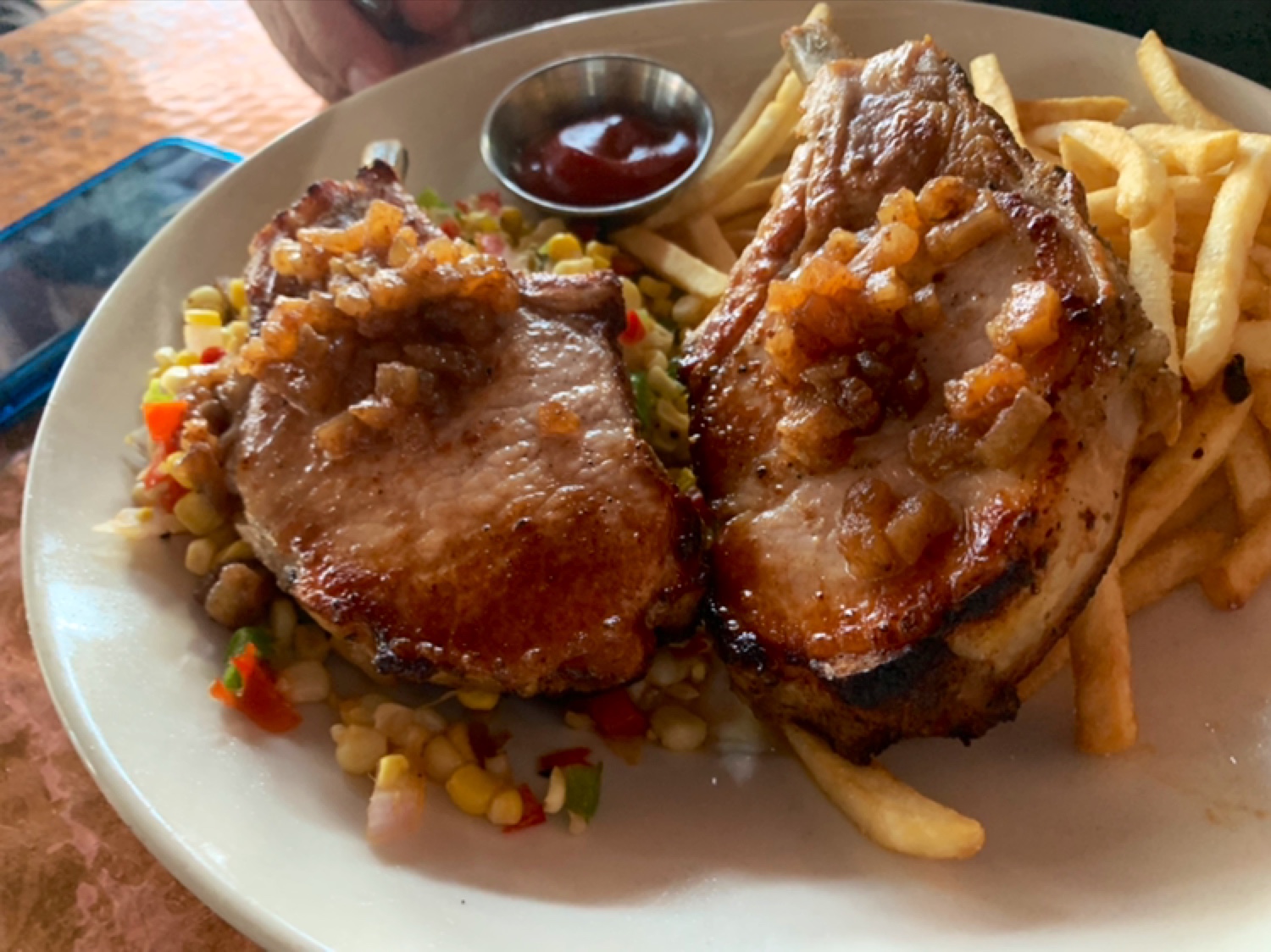 Our food was delivered by someone else. I ordered a wedge salad and a medium rare filet. The salad was great, but the filet was medium well and lukewarm—clearly overcooked and sitting out too long. My wife ordered the halibut, and the server chimed in with another off-putting comment: “If you’re looking for something less expensive, go for the halibut tacos.” Then to me: “I see you didn’t go for the petite filet. I know it’s expensive, but it’s amazing.” The implication was clear—and insulting.