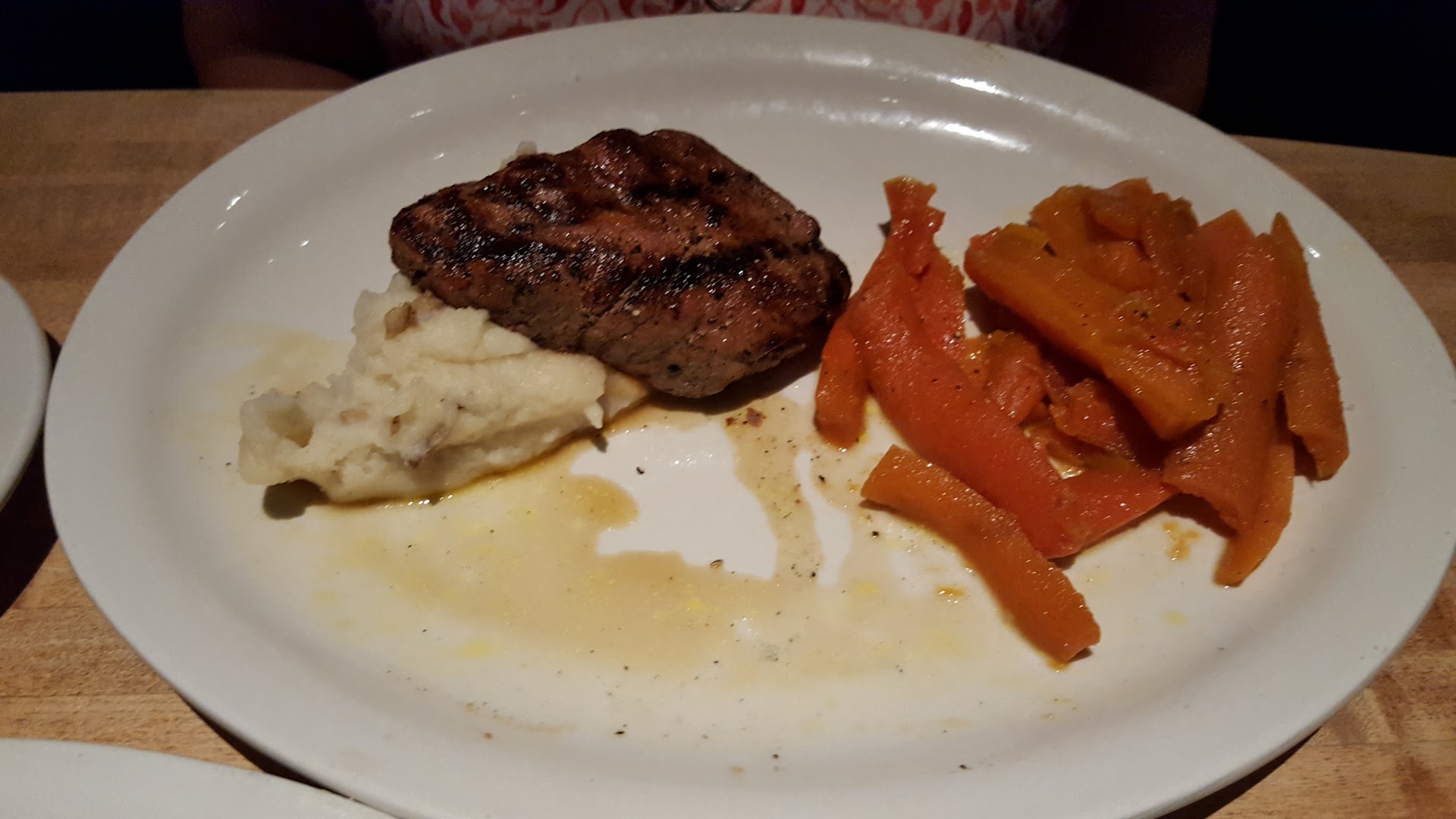 My fiancé had the New York Strip with mushroom sauce, which was the highlight of all the dishes. The steak was sliced thin, perfectly cooked and seasoned, very tender, and the mushroom sauce was amazing. Not too salty with a hint of earthiness. Her only regret was that there wasn’t more of it! Her mash was really good, but not a fan of broccoli. (She’s not a fan of any broccoli!)