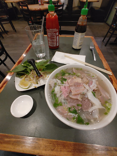 Let me start with the positive, the service and atmosphere was great. Food came out quickly and everything looked fresh however that was the end of my positive experience. First off I ordered the steak and brisket pho, during ordering came to first problem, only two sizes? Why? Nearly all Pho restaurants have three sizes and this leaves me still hungry with a small or over eating in a large. Second at the table the only sauces were hoisin or Sriracha. Where is the sweet chili sauce, soy sauce, salt or even worse where are the napkins? I like my pho spicy which will cause my nose to run and I only have the one napkin my utensils came in. Then the utensils every pho location I have ever been to provide you with a dish for your ladle as you will need somewhere to set it down, not here.