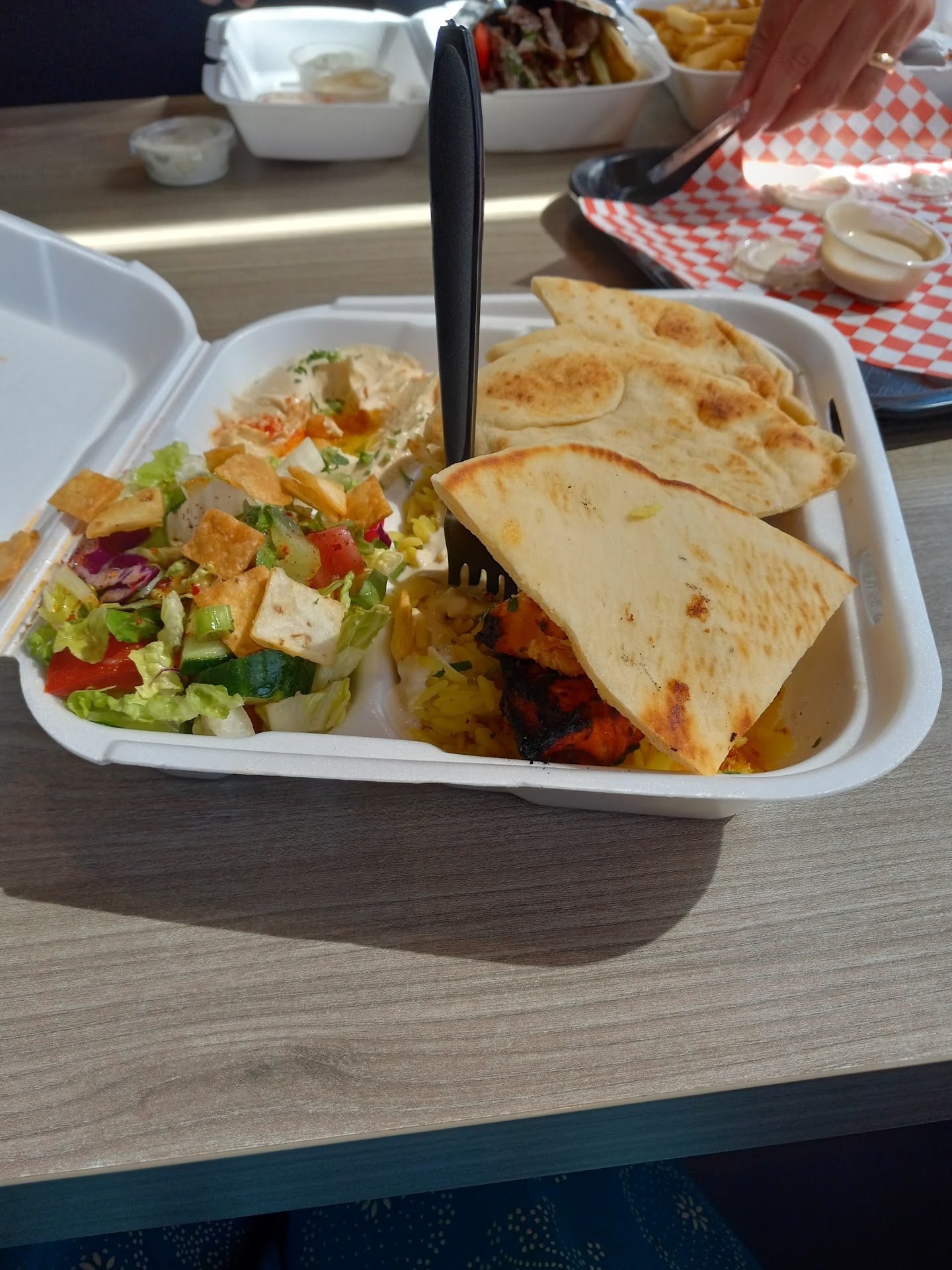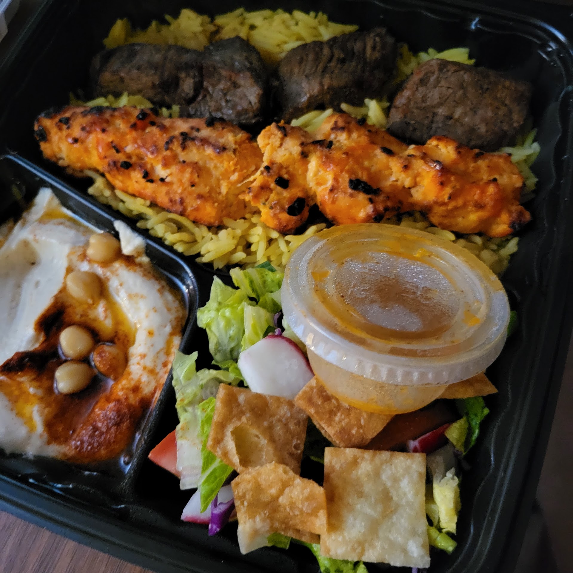 Read moreBeen past this place hundreds of times, finally ordered out and I am glad I did! Compared to any other Mediterranean grill this is the best! Everything was seasoned to perfection, full of flavor, and filling. We got the Shwarma mix plate and the Kabob Mix plate, that way we were able to try the chicken and beef. The kabobs : amazing, the beef was perfectly grilled and seasoned. The chicken was garlicky and char grilled but not burnt. The beef shwarma was full of flavor as well as the chicken. I'm typically not the biggest hummus fan as I've had a lot that have been pasty or gritty, lacked flavor or too oily. This hummus was great! I tried it thinking meh I'll probably let my husband have it bit after the first bite I devoured it with the pita. Oh the rice! Wow! It was buttery and tasted like it was cooked in a broth. I went in not expecting to be so pleased with our meal and by the time we finished everything, we were satisfied and know know where to grab amazing Mediterranean food whenever we crave it. It was about $20 per plate per person but the quality of the food, the taste and the portion is...