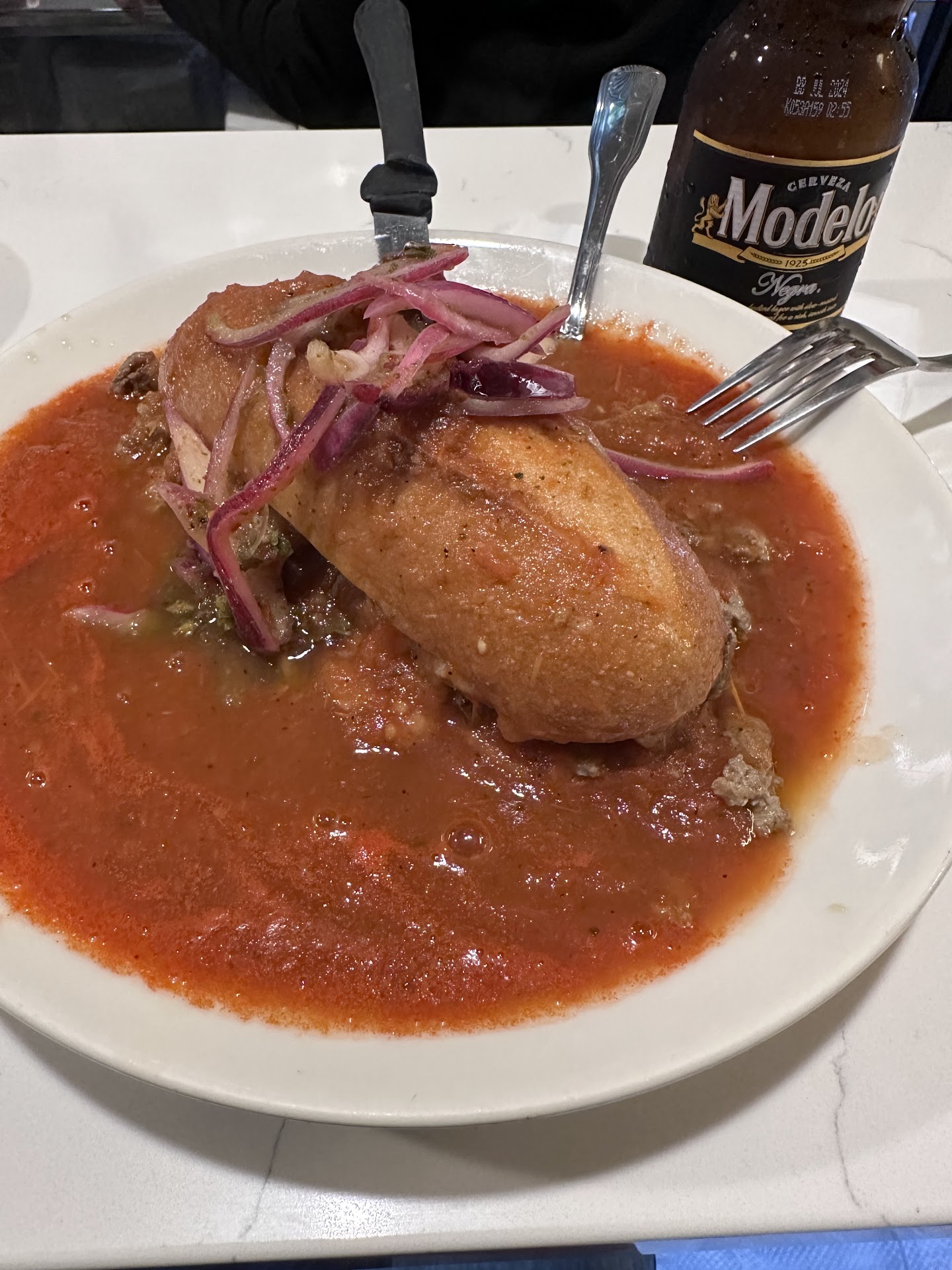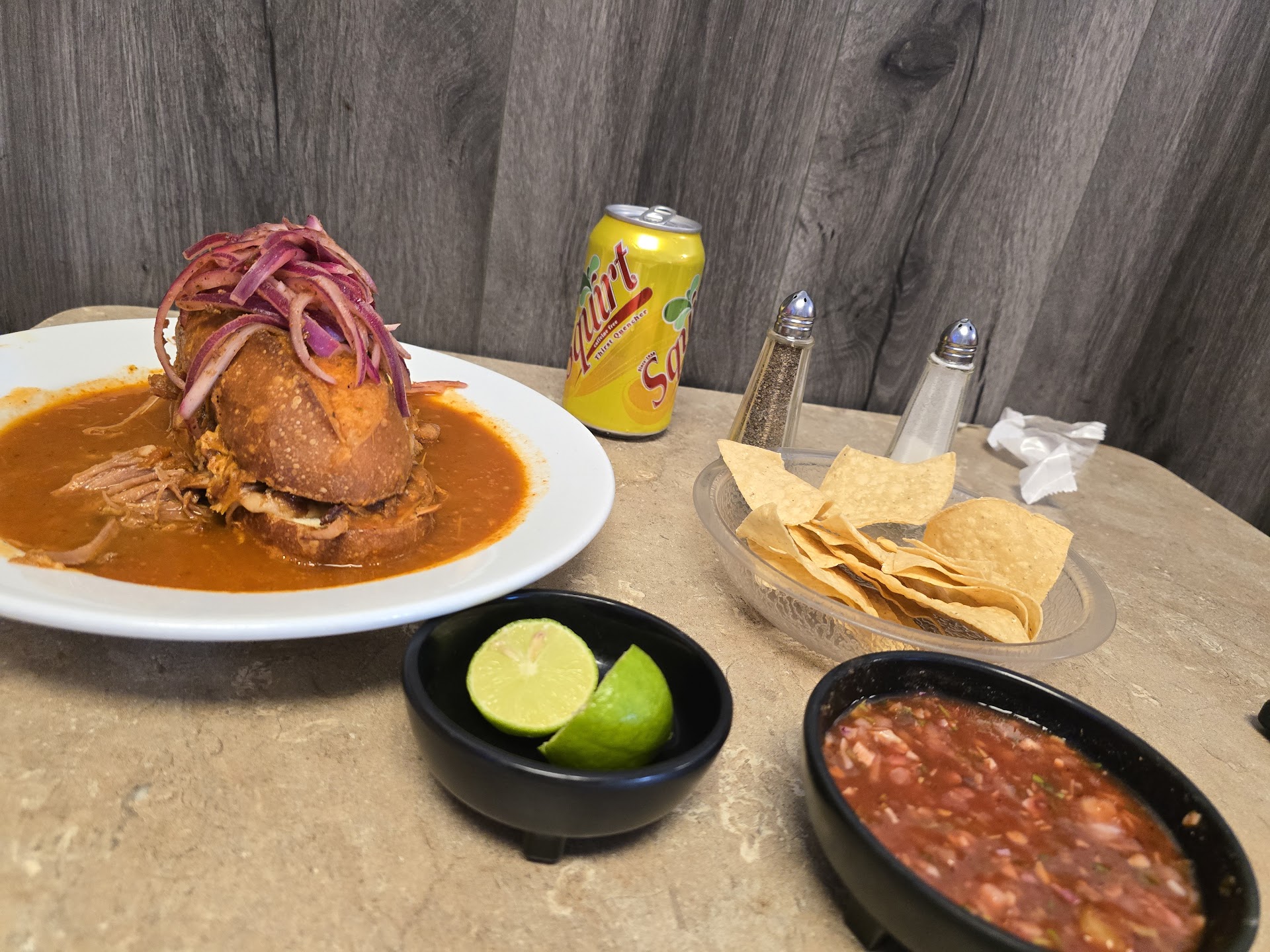 Read moreThis small yet unassuming spot impressed me so much. I have been back more times than I want to admit. Their salsa is amazing. It was super spicy with little chopped up cabbage and oregano. It's some of the best salsa I've ever had! And you know what people say; a Mexican restaurant is based on how good their salsa is. I can't stop ordering the same thing each time I come. It's the carne in su jugo, one of their most popular dishes, and i can see why. I've never had carne so tender before. It has beans and bacon with a green salsa base that is chefs kiss. Their caldo de res was so flavorful, and so was their chile relleno. You also have to try their carnitas torta ahogada. It was spicy and frickin delicious. The roll was sourdough, so it was a bit tough, but it held up against the sauce and kept its shape, and didn't get soggy. Fyi: their micheladas...