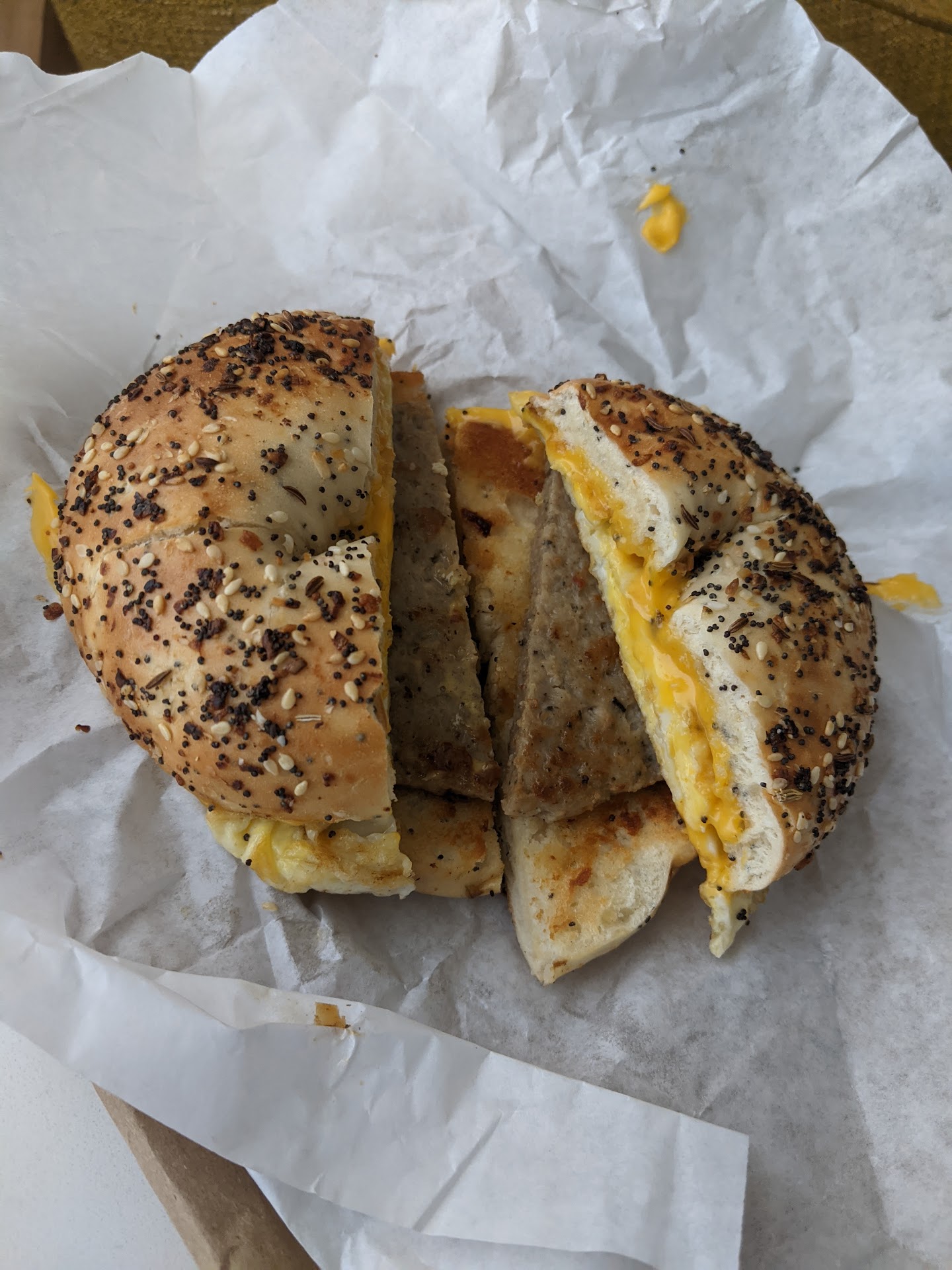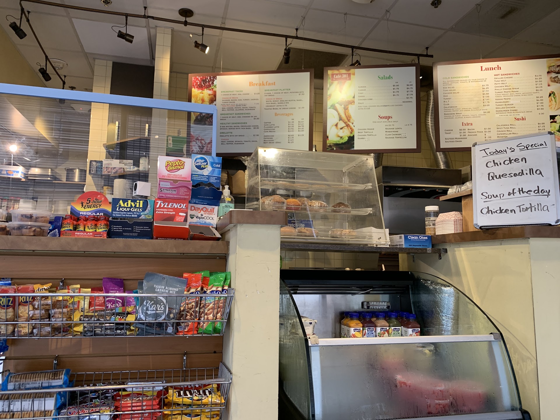 Counter-service spot for breakfast, sandwiches, prepared foods, & specials, with seating.