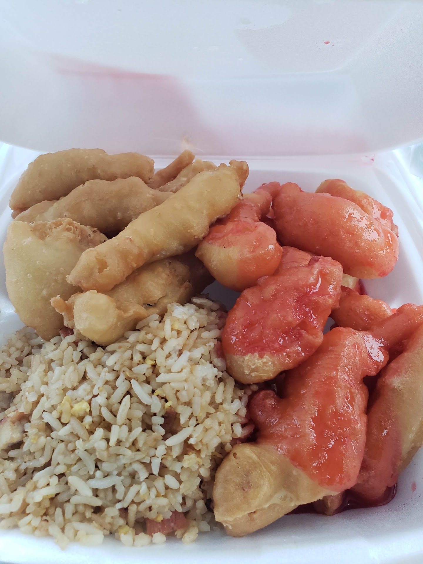 While this was already enough to drive our group bloody insane and skeptical, the quality of the food and service we had received was that of the equivalent to a McDonalds if McDonalds had chosen to bring your food right to you and not call your order number. I had ordered the Sweet & Sour Chicken which had basically been the equivalent of boujee Chicken McNuggets with Sweet & Sour Sauce. To go along with this chicken I had also ordered the Pork Fried Rice which actually tasted slightly edible despite the occasional plastic taste mixed with Sweet & Sour Sauce (They put the chicken right next to the fried rice).