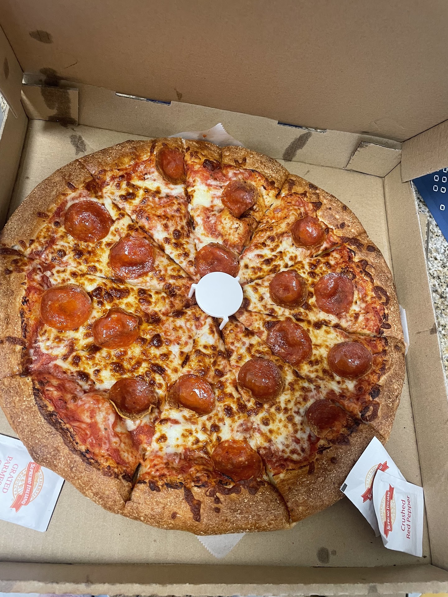 I was a bit confused and thought it was Strange way to sell a normal pizza , as the $7.99 pizza advertisement on the window doesn’t mention ‘lite’ cheese or sauce. Any way I said i wanted a normal amount cheese/sauce and was charged $15+. Took it home and turns out it had a lot of extra cheese and sauce. Therefore the 7.99 pizza was probably standard amount of toppings and i was just up sold.. I didn’t think this was very honest way of upselling a product and was a little bummed i paid 2x the price and didn’t get what i actually wanted.