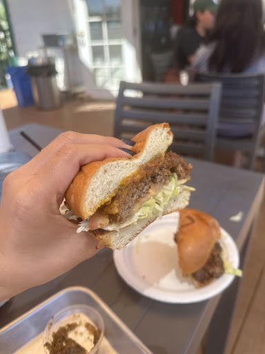 Read moreBest burger I have had in a long long long time. It tastes just like a good hemade burger from home. The guy cooks it right in front of you on a propane griddle and your burger is super duper juicy and drilling and the lettuce and tomato and whatever else jam they put in it is so freaking good. I just got home, and I literally want to go back for another crack! It was the best burger ever. Even though it sits on a nice antiquated 9 hole golf course, it's not a fancy joint, so don't go wearing your "fancy schmancy" clothes. The guy that is at the cash register is friendly and great. The older guy cooking the burgers is a little edgy! He's straight forward and customer service and hostess manners are not top tier but his cooking skills of those burgers are outstanding. They don't sell fries, so don't ask! You go andnget your own can of soda and bottled water out of a bucket, you pick your own potato chips at the front counter cause he's not going to being the chips and canned sodas to you, your own your own They do serve a few sod drinks out of some very old and questionable chill cups! I would recommend d drinking out of a straw because ....well...... you'll see! The restrooms were clean Overall, I can't wait to go back to get a burger but that's it. The sides are not the desireable and do not go with a burger. Sides were like, white chili beans, some kind of rice in a cup, etc. And I do mean, etcetera!!!!! Much to be desired! Stick with the burgers, chips and a cold...