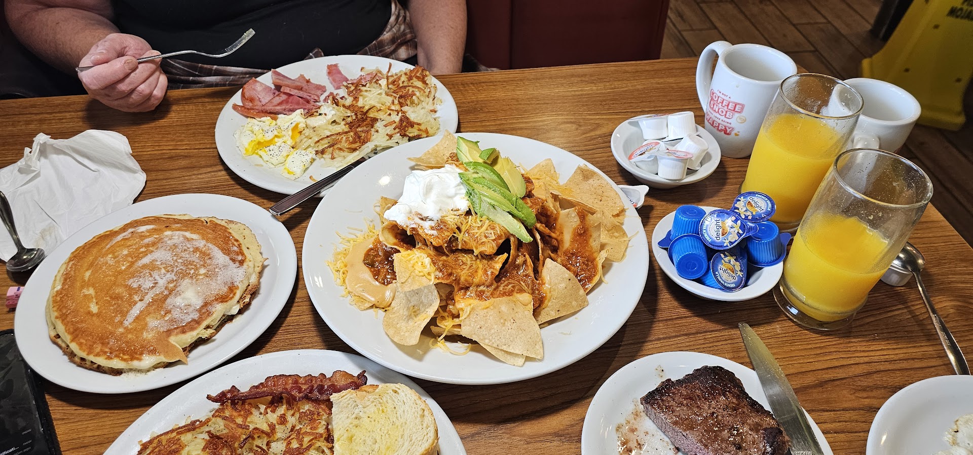 Read moreFirst time going there and worst dennys I have eaten. Why? Because it was a group of friends that went and when we first came in they took for ever to sit us down. Mind you this is 1am when we got there. Second we were a bit thirsty and no waitress or busboy came to at least give us drinks ( literally 30 min waiting on him to get us the drinks) then he gave us 3 wrong drinks. We were about to order our food but he then left. Which was very rude. We waited about another 20-25 mins for him to take our orders. Meanwhile as we were seated there was aunts crawling on the table ??? Like really no pest control ? When the waitress finally came to get our orders we told her about the aunts and she ignored it and wiped it with a rag and laughed. She took our orders and then left. It took about 1hr or more forgot how long but for us to get the food, and that was only because we had to get up and talk to the manager about why our food was taking so long if there was hardly any customers ?? The employees were just talking in the back kitchen when I went up to complain. He then said "oh your food is ready " and he followed me and took he food to the table. As we were going to eat some of the food was cold! I was really upset because I knew it had been sitting there and it wasn't even luke warm it was just cold . So we had to get up and tell them to warm it up. Then the pancakes were not cooked right and you can see that it wasn't. But we left there around 4:30am mad and disappointed because of our experience there. I hope that they change and have better service...