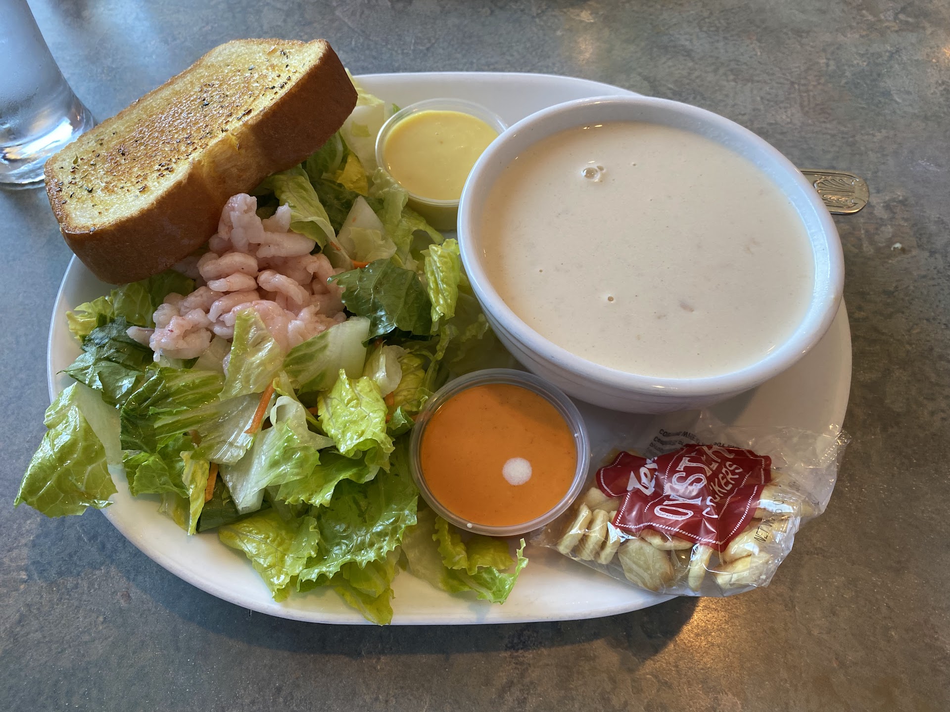 I ordered the combination, everything Cajun style, upgraded from cup to bowl of clam chowder and fries. I didnât add any seasoning to anything (but the fries, though they didnât need it)