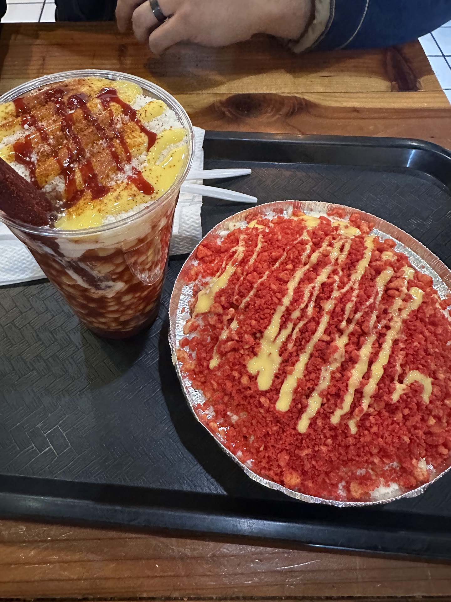 Food: ⭐⭐⭐⭐⭐ At El Esquite, the food is nothing short of fantastic. I ordered their famous French fries topped with a delicious medley of nacho cheese, fresh corn, mayonnaise, a sprinkle of chili powder, and a generous dusting of parmesan cheese. Each bite was a flavor explosion! The fries were perfectly cooked, and the combination of the creamy cheese, sweet corn, and spicy chili powder created a beautiful balance of flavors. The dish was indulgent and decadent, making it a perfect choice for anyone looking for a satisfying treat. I can’t wait to come back and try more items from their tantalizing menu!