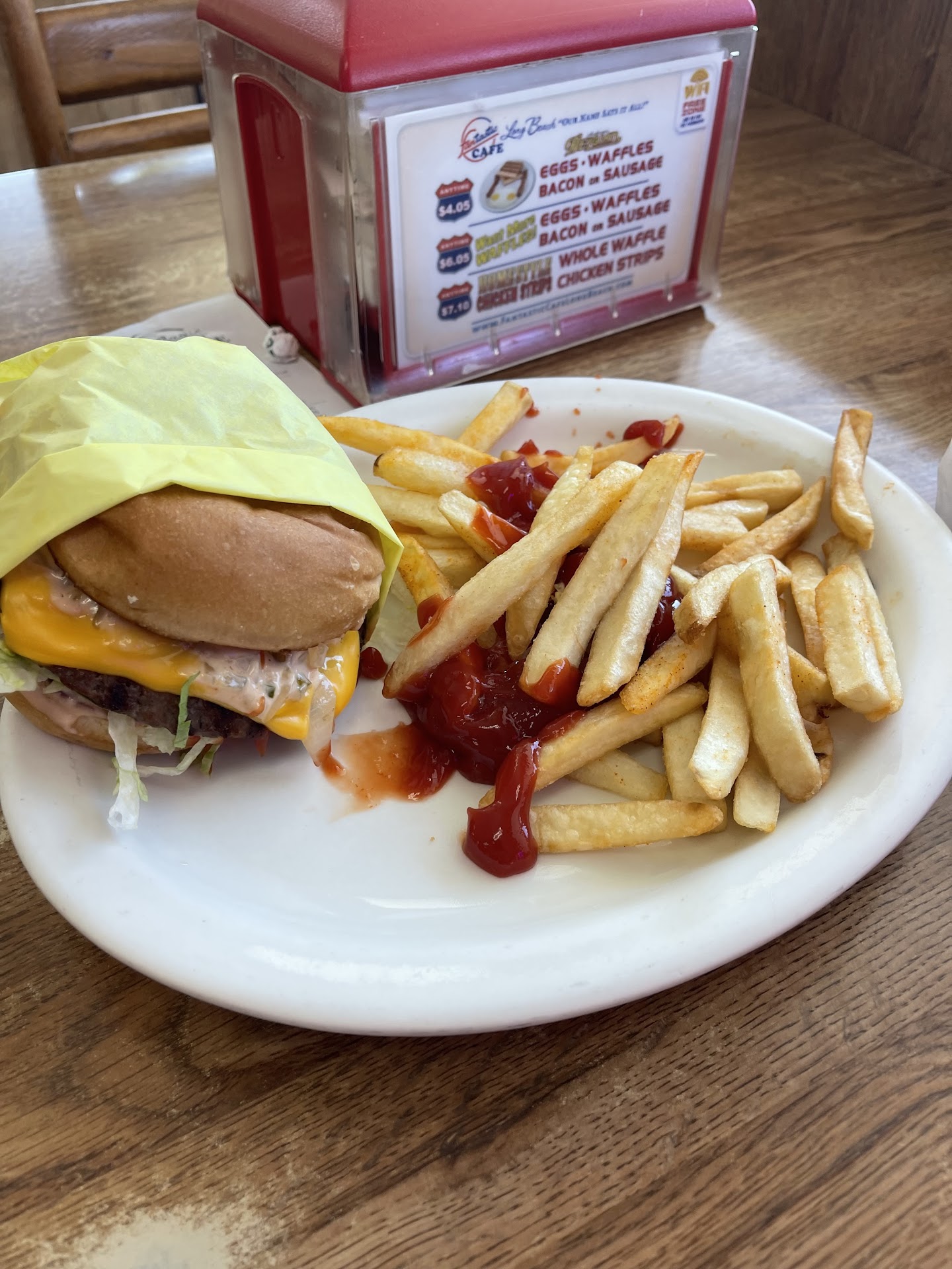 CHECK PRICES IN YOUR RECEIPT AND MENU!!! They are liars and thieves! I saw the tag with waffle deal at the cashiers register for $4.05 Anytime (see pics). When I paid and checked my receipt I saw I was chargerd $5.05. I asked why if the tag clearly says “Anytime $4.05”? The lady tried to remove the tag, but I was faster and made a pic of it. I called for the manager and asked why they do that? He said “Anytime 4.05” is not a price, but name of the freeway. Really? I asked him where is it freeway 4.05 (four point zero five). He was insisting it is a name of the freeway. And interesting that price in my receipt looks very familiar 5.05, isn’t it? He couldn’t explain why there is also word ANYTIME in front of 4.05. When I became very angry he admitted, that it was a price 4.05 before, but they raised it to 5.05 and I’m not the only one who complained about it. So the manager lied to me from the very beginning trying to fool me. Ok. And? Why the tag with wrong price was still there? I came 1 month later and that tag is still on the counter misleading customers. So they are literally thieves and they know it. Stealing from each customer at least $1 every day many many many...
