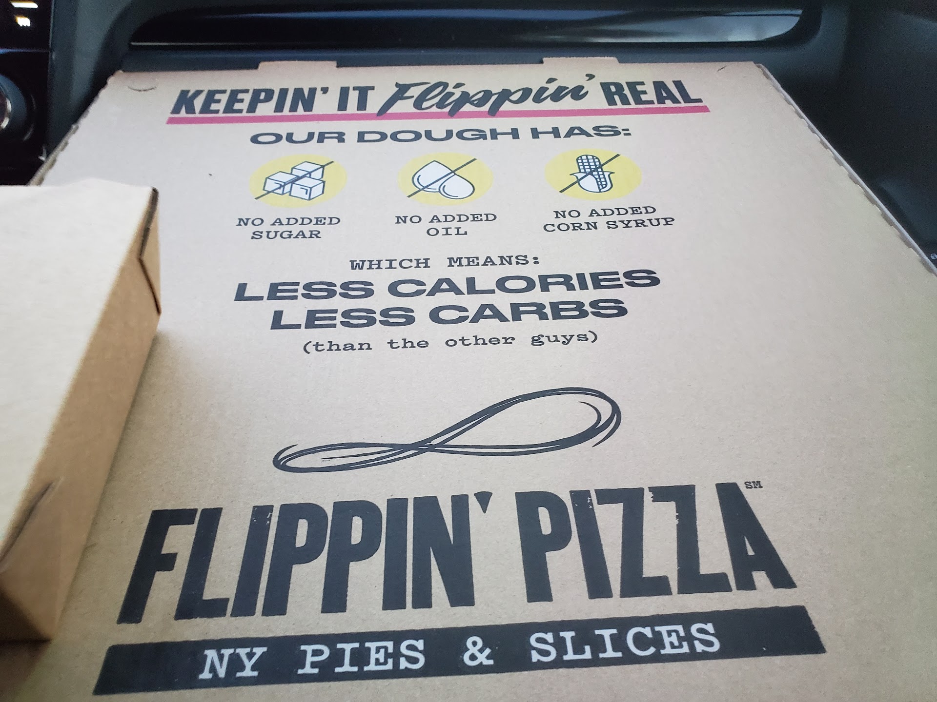 The Pizza: The foundation of any good pizza is good crust that's baked well. This crust is perfectly done, and apparently not filled with extra additives to make it hyper palatable. What it is is a simple flat bread that does it's work perfectly and doesn't overwhelm or underwhelm. It lets the toppings shine. The cheese is portioned correctly. It's high quality cheese that melts and pulls well. It's not gummy, and it's not undercooked. It's perfectly melted. The chicken and buffalo sauce complimented each other very well. The buffalo sauce has a nice little kick without being overly spicy. There's a decent scent of vinegar to the sauce which makes me wonder if it's made in house. Kudos to you if it is, Flippin' Pizza.