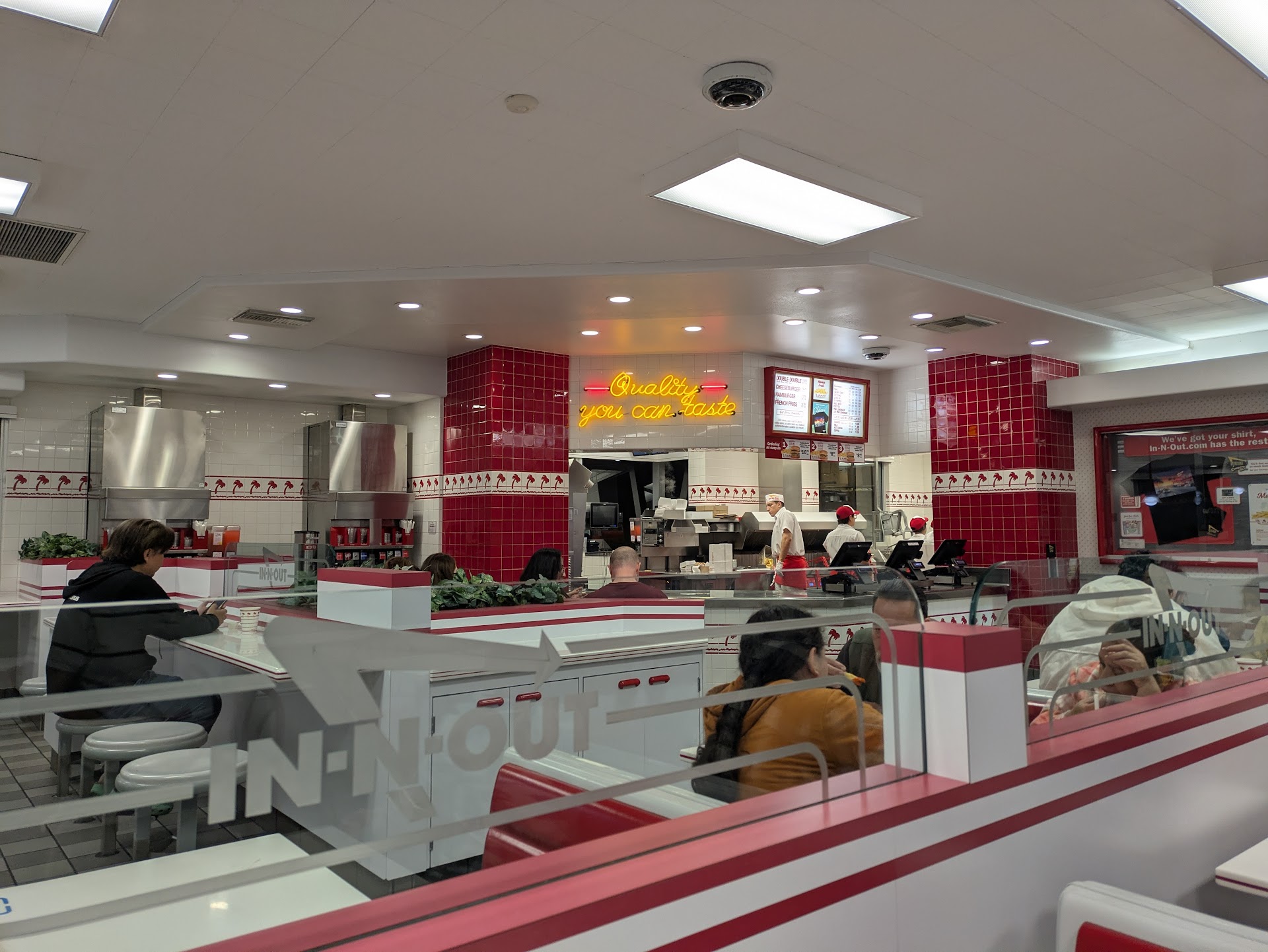 This In-N-Out location shares parking space w/ Chik Fil A & a car wash. Parking is usually hard to come by. Plus, the drive-thru line can back up & block your car from driving off. However, it's always worth it in the end to grab a big, juicy double-double.
