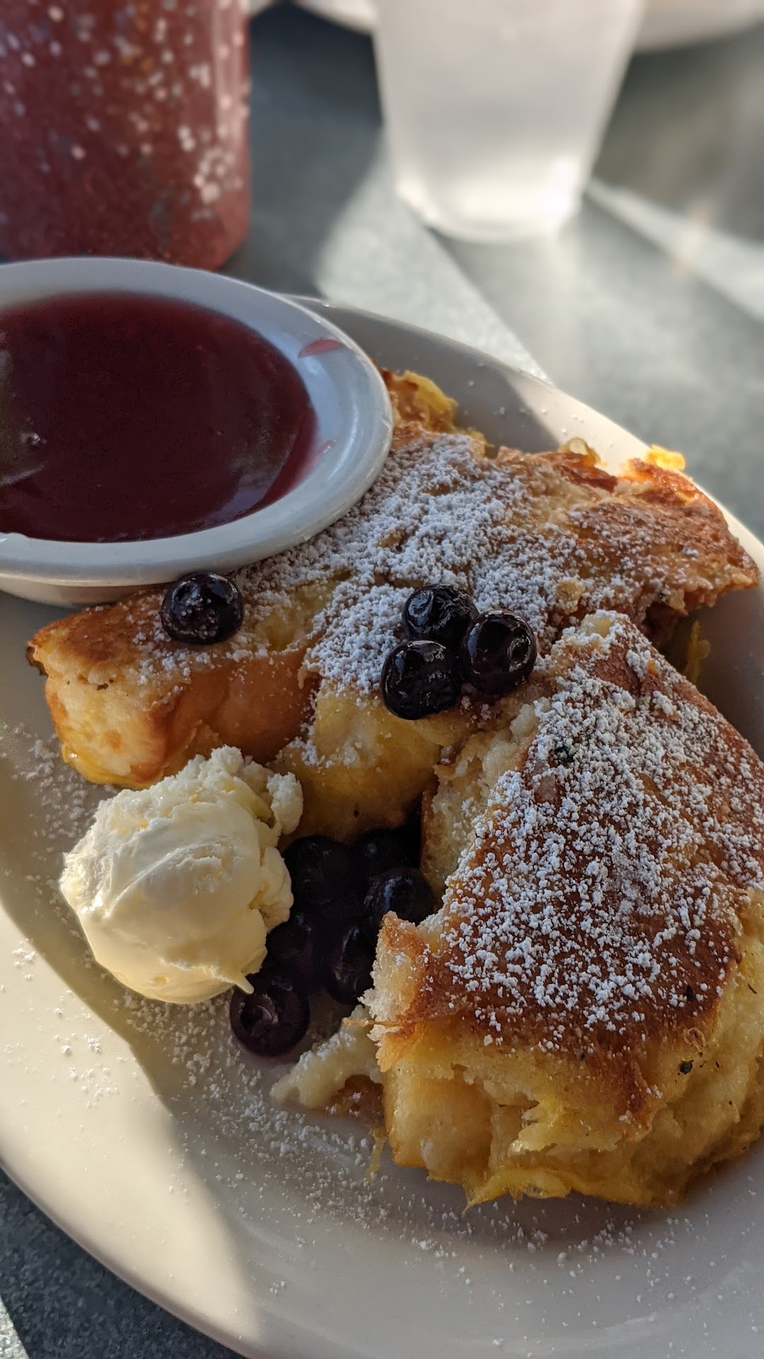 I started with French Onion soup, I've had better but it was satisfying on a chilly day! I wanted something savory so I ordered the Chicken Pot pie. I knew when he sat it down, it wasn't going to be good. The broth and crust was VERY bland, even after adding salt and pepper. There was hardly any vegetables and the chicken itself was very bland. Because of their great customer service, I didn't want to return it, but after a couple of bites, I couldn't eat anymore. I wanted to return it and I asked the waitress for another menu so I could try something else instead.