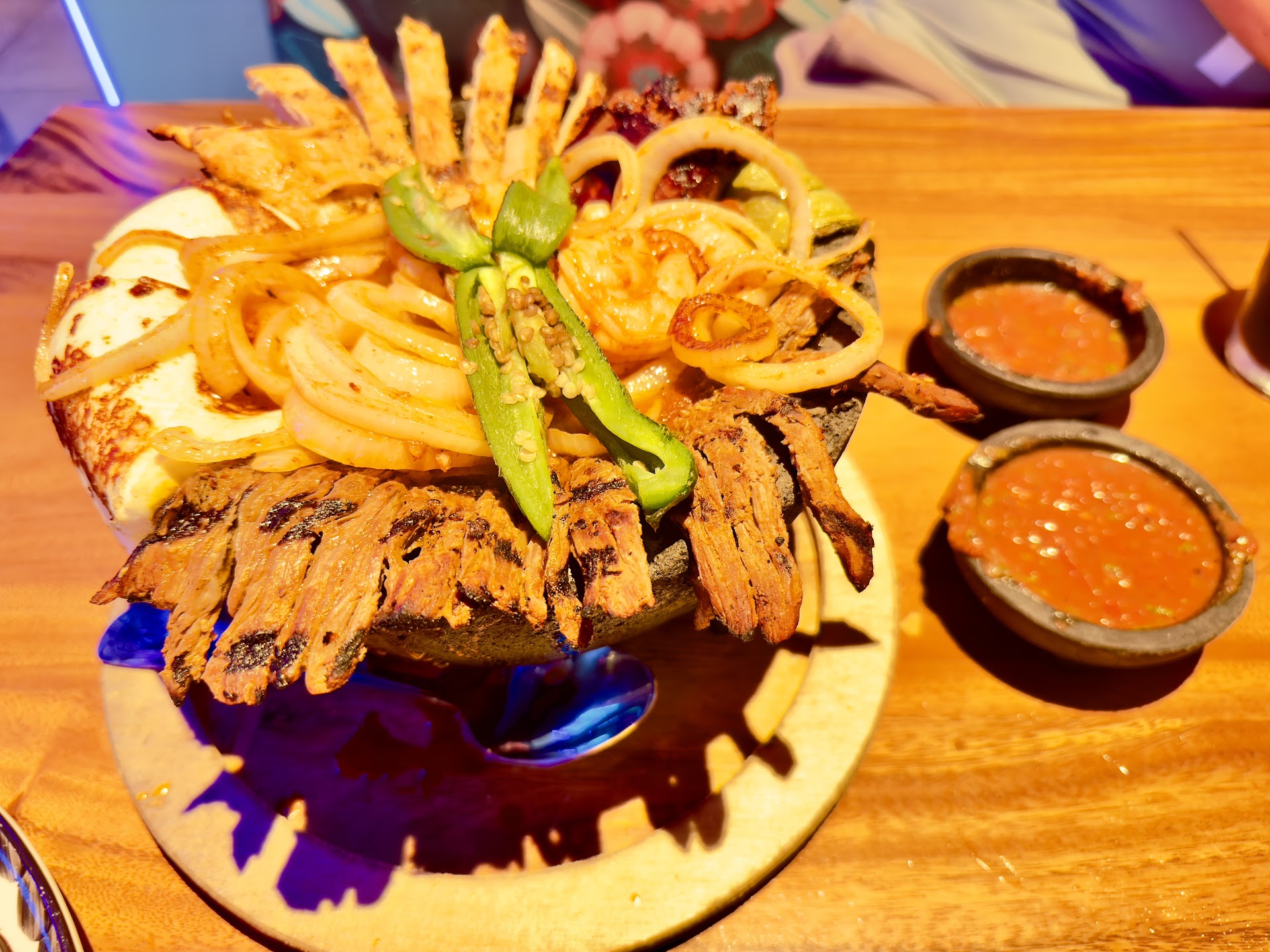 Read moreWhat a pleasnt surprise this place was!😁 . In the night before a cruise on the Firenze and everything around the Queen Marry wss closed for food past 9:30p on a Monday😭. . The food was supert tasty and the atmosphire was relazing! It had a large TV and about 6 others with music videos playing and the place was lit up like a night club, not too bright, just enough to see and relax! . The Mezcal with passionfruit was so tasty. The Margarita with cuccumbers was so tasty and the Cab was a Cab. Would loved to have tried them all. . The delicious Barbacoa entree was enough to feed all three of us but, alas, they had tacos! . The Mushroom taco was surprisingly good while the Carnitia and Asada tacos were so tasty! The rice and beans were pretty good as to be expected. The nachos were Nachos but had the tasty pickled onions and carrots which was really good with it. . The staf was really engaged and attentive. Supper chill and friendly. . All in all, would definatley go back and our Uber said this was a chain restaurant. Never would have...