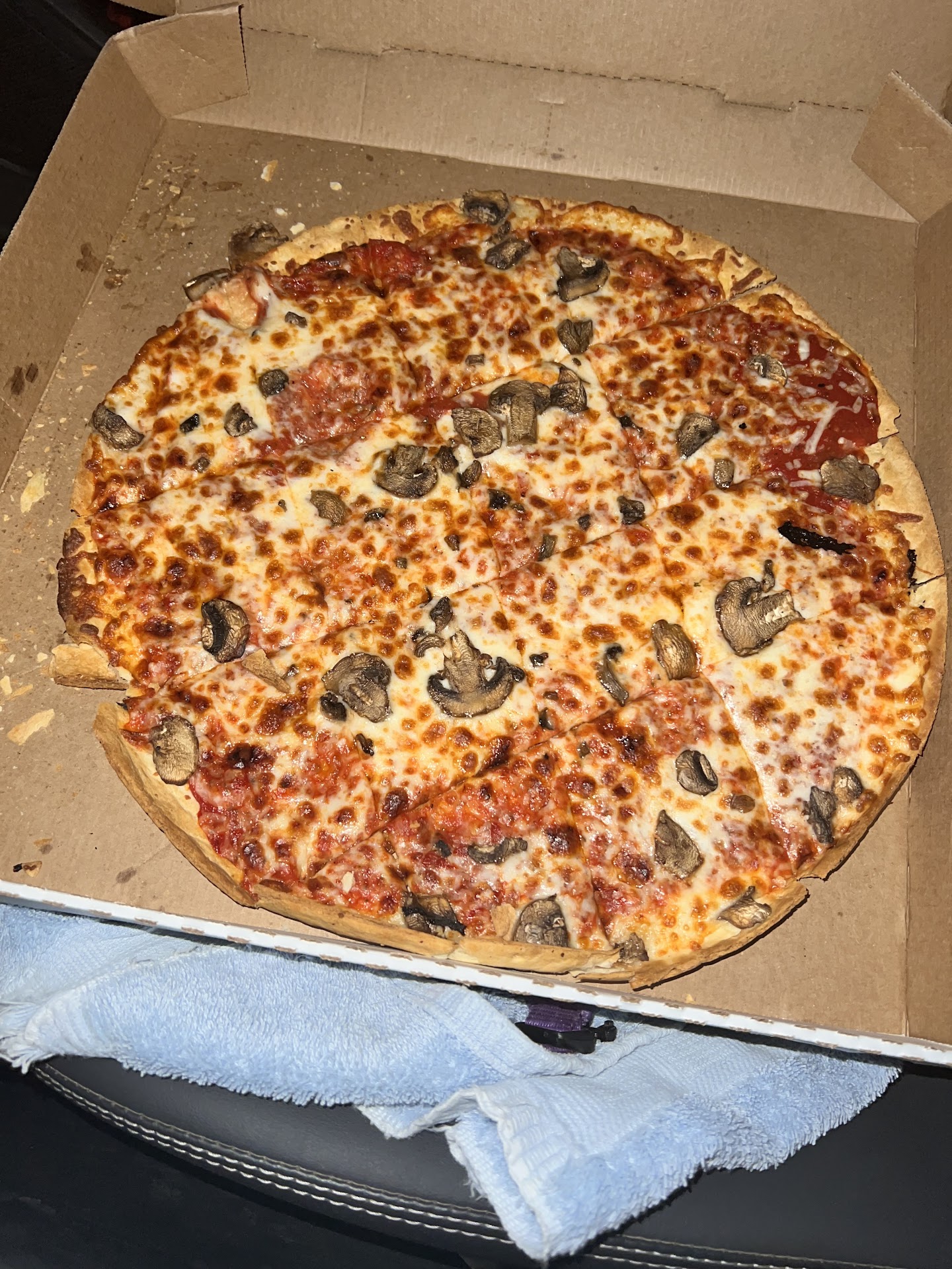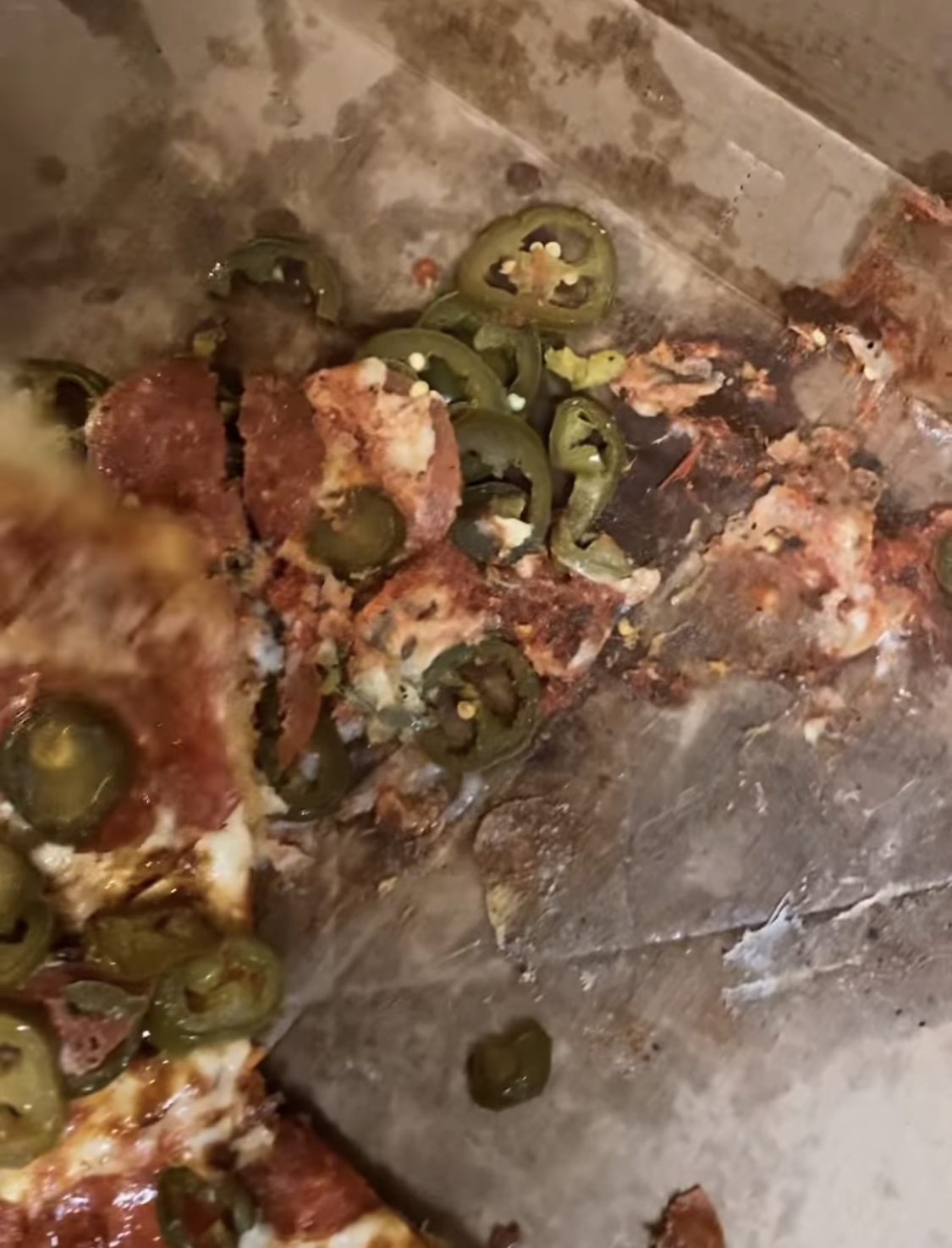 My educated guess: someone poured Jalepenos on the pizza straight from the container and a ton fell out along with the juices and made the pizza too wet. When they pulled it off the oven, the pizza probably folded because the dough did not properly cook. The cheese and other topping fell off and they unfolded the pizza leaving toppings underneath and then CUT IT and SERVED IT. Don’t go to this location. They clearly do not care about your food. I mean, I get it. It’s little Caesar’s. But this was...