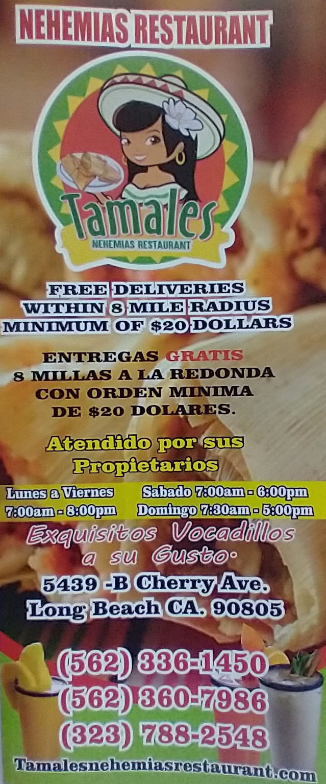 If you're looking for authentic homemade tasting tamales - Nehemias is the place go for tamales with a good ratio of meat to masa. So far, I've tasted the pork with red chili and their pork with green chili - both are very good!!! They started their business by selling tamales out of their van at the Home Depot parking lot off Cherry and Willow. To meet the demand, they opened a store front where the make their tamales daily. You can place an order; you can pick up at the store; and you can still find the husband at Home Depot. Their tamales are fresh! If need a dozen or more, call in advance and place an order. They often sell out!!!...
