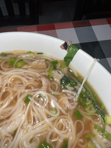 Read moreI went here because I was feeling under the weather and wanted some broth from the pho soup to sooth my sore throat only to leave disappointed and disgusted𤎠As I already been sipping the broth and had taken a few bites I noticed something black hanging in the noodles and I almost ate it only to look closer it was a big dead fly 𤢠as if I wasnât already sick this just made me feel more sickđ I called the guy who I think was the owner over to show it to him and his reply was â oh you know thereâs flies everywhere we have no control over them â to which I understand but that still doesnât make it ok for it to be in the soup that many people had already eaten. Theyâre are many ways to prevent flies from going in and on food. Who knows how many flies were in my soup before I ate it or other customers who had showed up before or after me. After telling the worker he told me they would make me a new bowl to which I rejected because I didnât want to eat anything else from this restaurant from being disgusted because I just ate fly soup 𤢠I took a picture and my flash turned on and he seen it and he rushed back over to tell me if I was done because he was low key trying to rush me out before other customers can see what was going on and they would lose business. I honestly feel bad for not telling the other customers but I was so sick to my stomach I just wanted to get out of there. Attached is a photo and the fly on the top right...