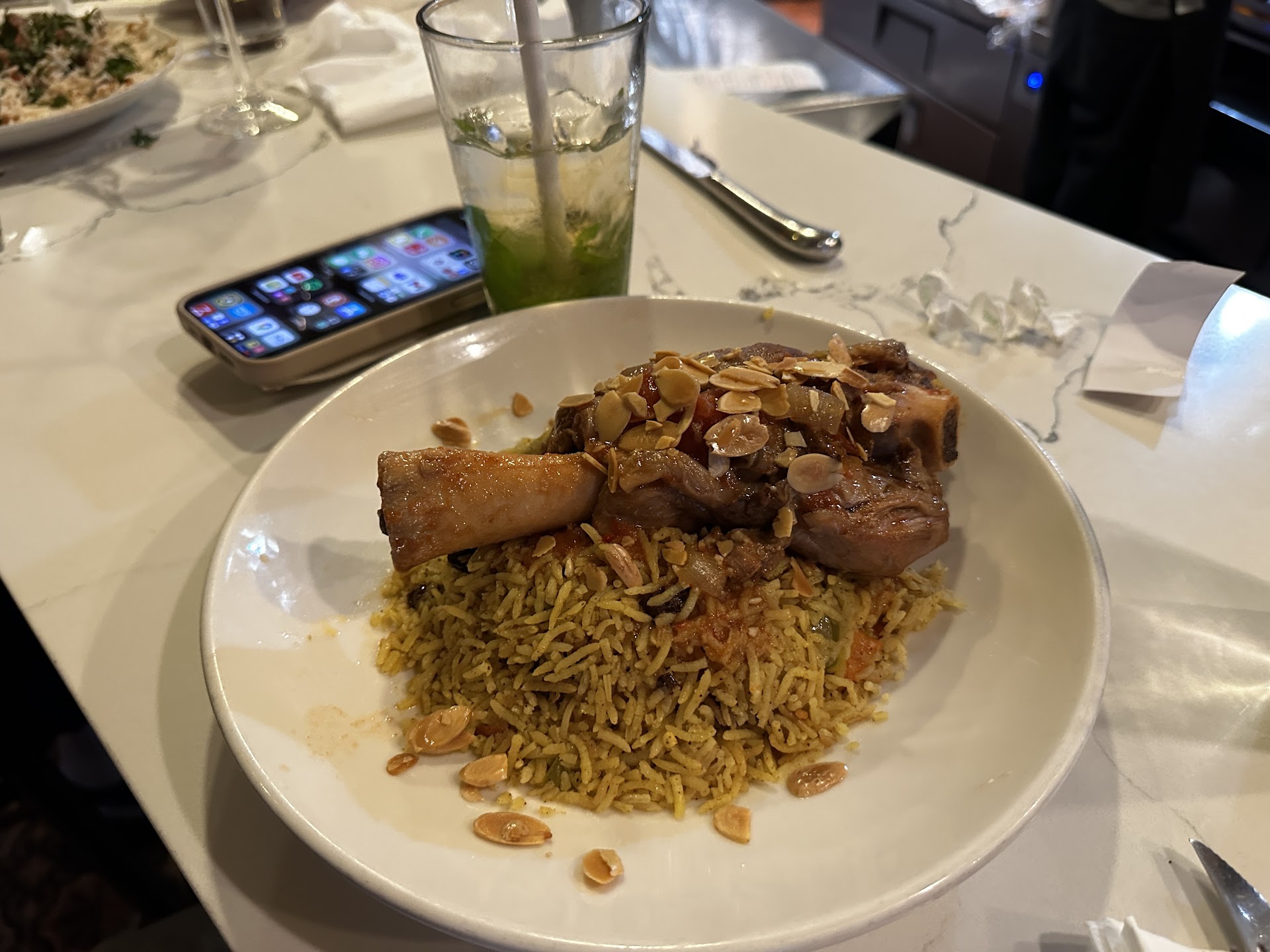 Now, let's talk about the star of the show – the Kabssa. This dish is a true labor of love, as the lamb shank is braised for five hours over a low flame, resulting in tender, succulent meat that practically melts in your mouth. The combination of tomatoes, spices, and herbs creates a symphony of flavors that is both comforting and exotic.