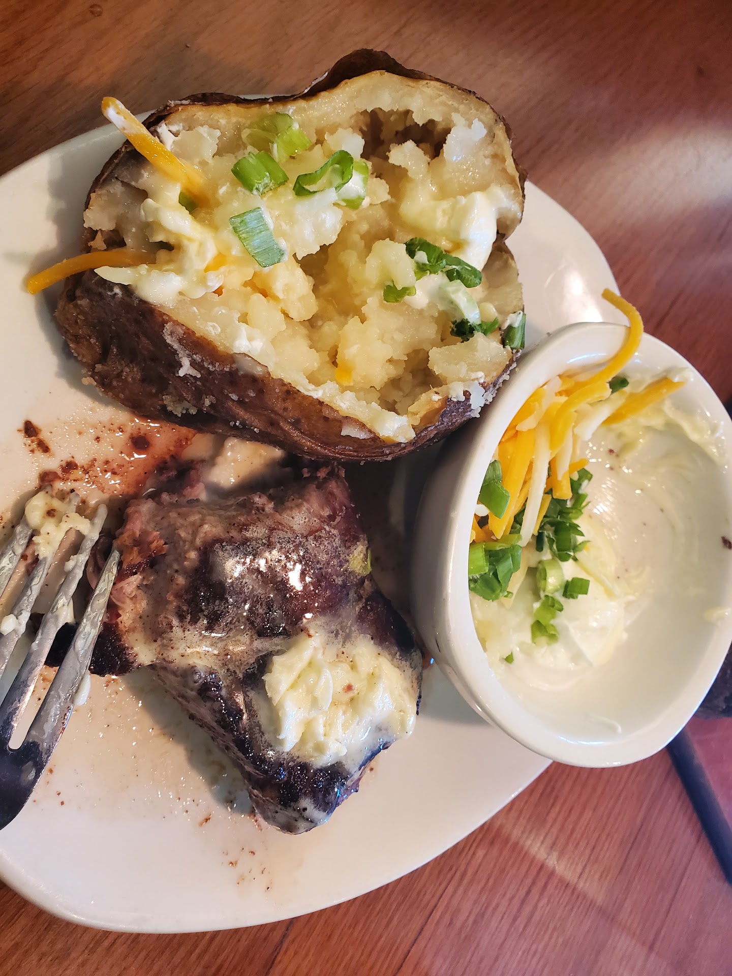 The meals we ordered were at different temperatures; the shrimp were cold, while the potatoes were the only thing at temperature.