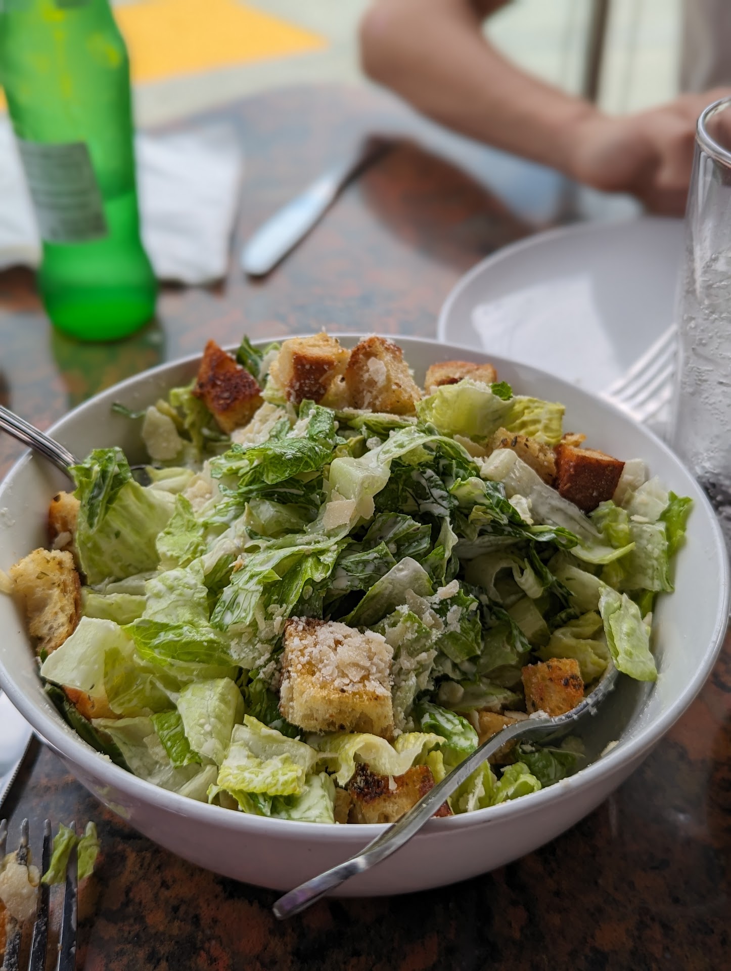Upon arrival, we were promptly and pleasantly greeted and seated in the outdoor area. That concludes the good service. From there, it took 20 minutes for the server to approach our table. At the time, there was only ONE other table seated in the entire restaurant. One. We placed our orders with our server who was more interested in what was going on with his co-workers than his two tables. The food arrived with one of our meals completely incorrect. It was relatively quickly rectified, and the correct meal arrived. We then asked for a side of hummus, but it took so long that we were both finished with our meal by the time he brought it to the table. Our server never checked on us, never pre-bussed, never even peeked outside to see if we needed anything.