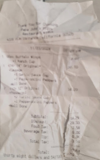 Read moreTo date, I can only speak of receiving decent customer service here. On Christmas, I don't take any food with me after spending time with a bit of family (🤔-- I know right). It's getting nearer to evening and I'm getting hungrier. I go to the super market and find the doors shut. I call a couple of places and receive no responses indicating they are open. While driving, I notice Papa John's is open. The extra cheese and mushrooms make the slices tastes even better. Shake the Garlic Sauce before opening it. Bite the pepper any time during the meal 👀.