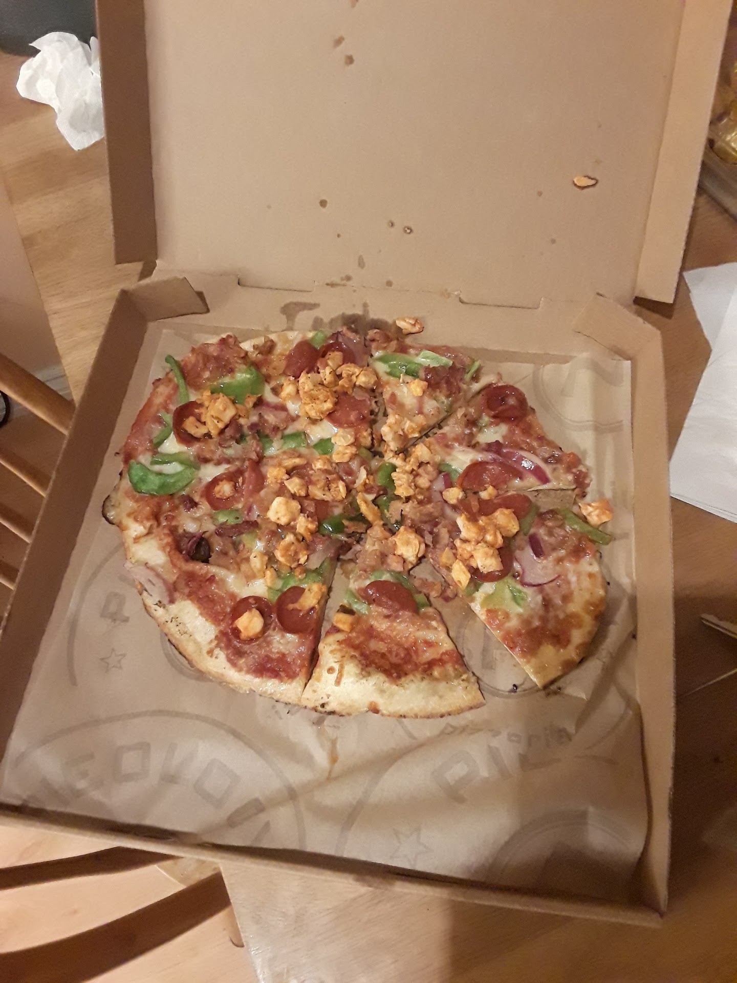 Read moreShowed up during one of their busier hours. 4 employees + manager working. Watched 3 customers give up and leave. Gave me lopsided pizza dough. I could've said something, but I shouldn't need to; pizza is supposed to be in the shape of a circle. The fact that they thought this was ok is not alright. Didn't spread out the red sauce like at all. After ordering, hastily brushed me aside to the cash register and put my pizza at the end of a line of 10+ uncooked pizzas, despite the fact the oven was half empty. After receiving my order, I found the slices cut badly. Multiple slices were little more than a single inch long. I'm not even sure they gave me a normal sized pizza.