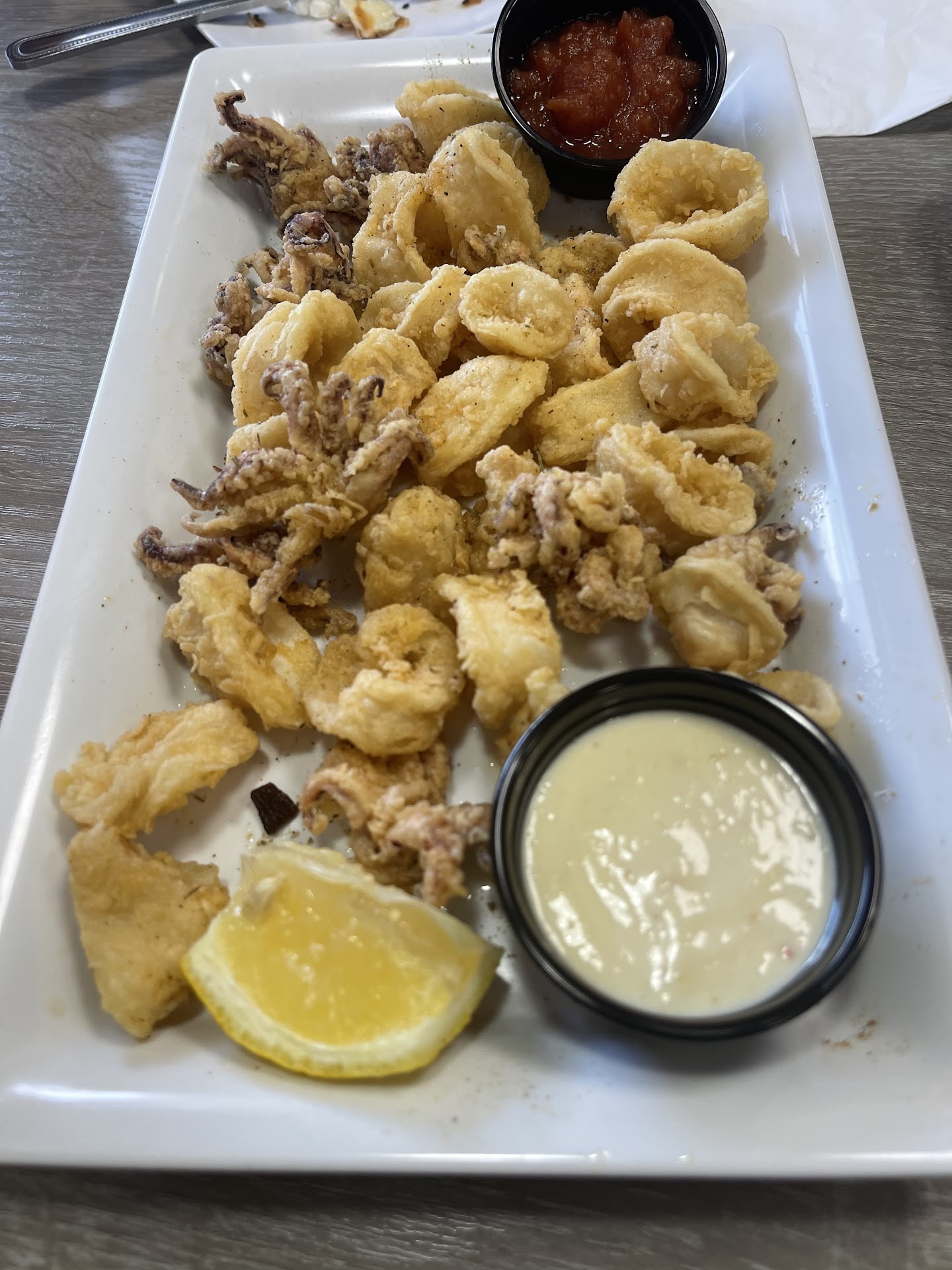 Taste - my fiancé had the 1/2 chicken w/ rice and she loved it. That is her go to plate and she liked the texture and taste of the chicken as well as the calamari app that we ordered. I had the keftedes and also orders the honey feta (we always order the honey feta), the honey feta is nothing too special but we like the sweet/salty start to our meal. The calamari was tender and evenly seasoned. My keftedes were a bit too rich in flavor, kind of salty but I liked it. Also the tszaziki was a bit salty too somehow? I wish that the veggie kabob that accompanies the plates were freshly grilled when it comes out, kissed by the fire. The pita was great, soft and not chewy. The rice on the plate wasn’t hot enough for me and slightly under flavored.
