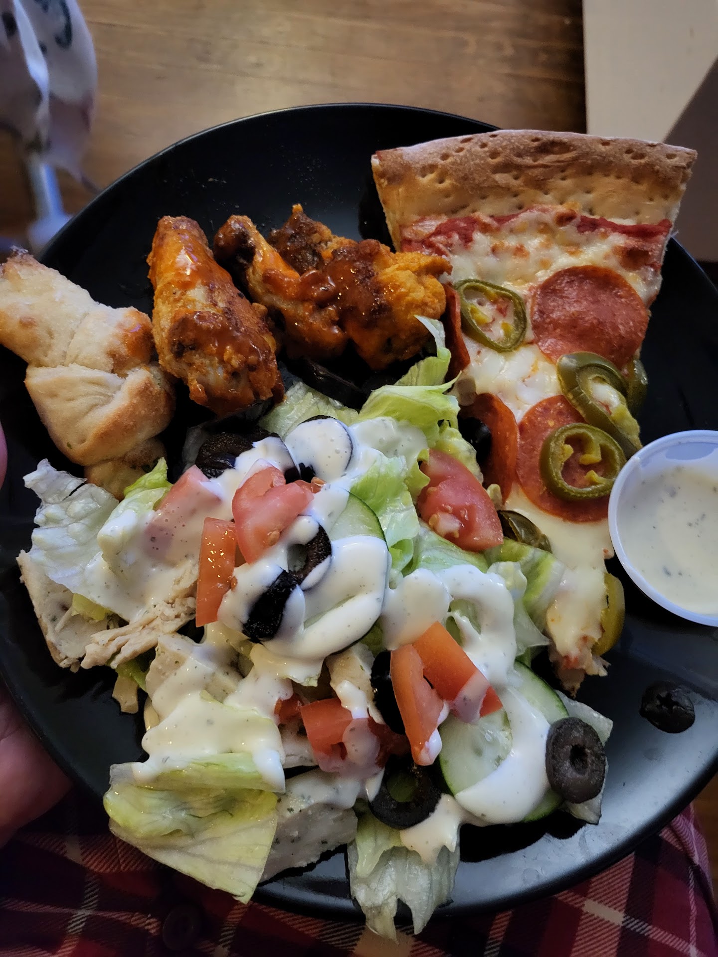 Read moreOrdered the feast ($50 with tax). This came with a xl pizza -2 toppings, salad, piece wings, garlic or cinnamon knots and a 2liter soda. Great deal to feed the family. The chicken salad was underwhelming, will get Ceasar or antipasta next time. Other than that the pizza and knots were really good! The pizza was not too greasy and I had 0 regret later in the evening or next day as some pizzas weigh heavy on your guts. The wings weren't the best nor the worst, average pizza parlor wings, but on the small side. I will order again with a few adjustments. The dough made it for me as well as the...