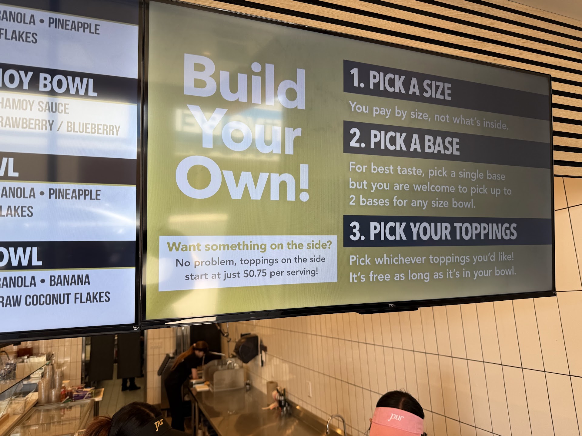 Read moreOh my god best acai bowls ever and I will never go to another place. The girl who made it was so nice and made great conversation with me! I got pitaya, pur berry (highly recommend) and the dragonfruit one. Vanilla chia tasted great, and amazing selection of unlimited, fresh toppings. They also serve actual meals so I’ll be trying that soon, they’re also open pretty late so it’s good for...