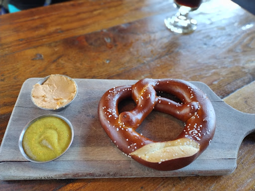 We got our drinks reasonably quickly and put in an order for the giant pretzel (they were out of the regular ones). It took probably 25 minutes for the pretzel to arrive. While waiting, maybe after 10 minutes, we ordered. Several items were unavailable - one beer, 2 sides, and one entree. Our food didn't arrive until close to 8:30 or just after - nearly 40 minutes after being seated.