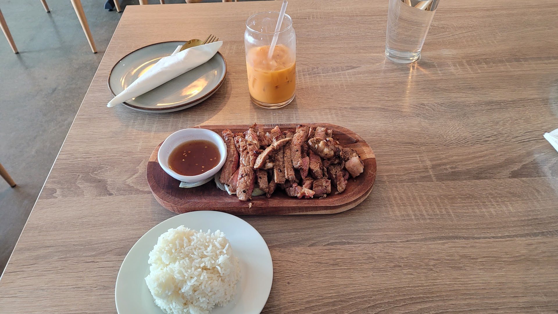 Ā Ā Ā Read more$35 lunch that I had to ask āif thereās a Lunch Special Menu?ā My server huffed and puffed at my request and eventually brought me a laminated sheet of paper with the lunch options. Music was a bit loud for the empty restaurant but the employees were even louder than the music and the woman seemed to be screaming at my server? I had Mee Krob and Green curry with pork that included a fried egg roll but only a fork and spoon which made trying to eat the included the whole green leaf salad difficult at best, no knife. I had to repeatedly ask for a water refill from my disappearing Houdini server. The sherbet was a nice touch but the wooden paddle spoon replacement didnāt taste appealing. Overall good food but employees need training to serve...