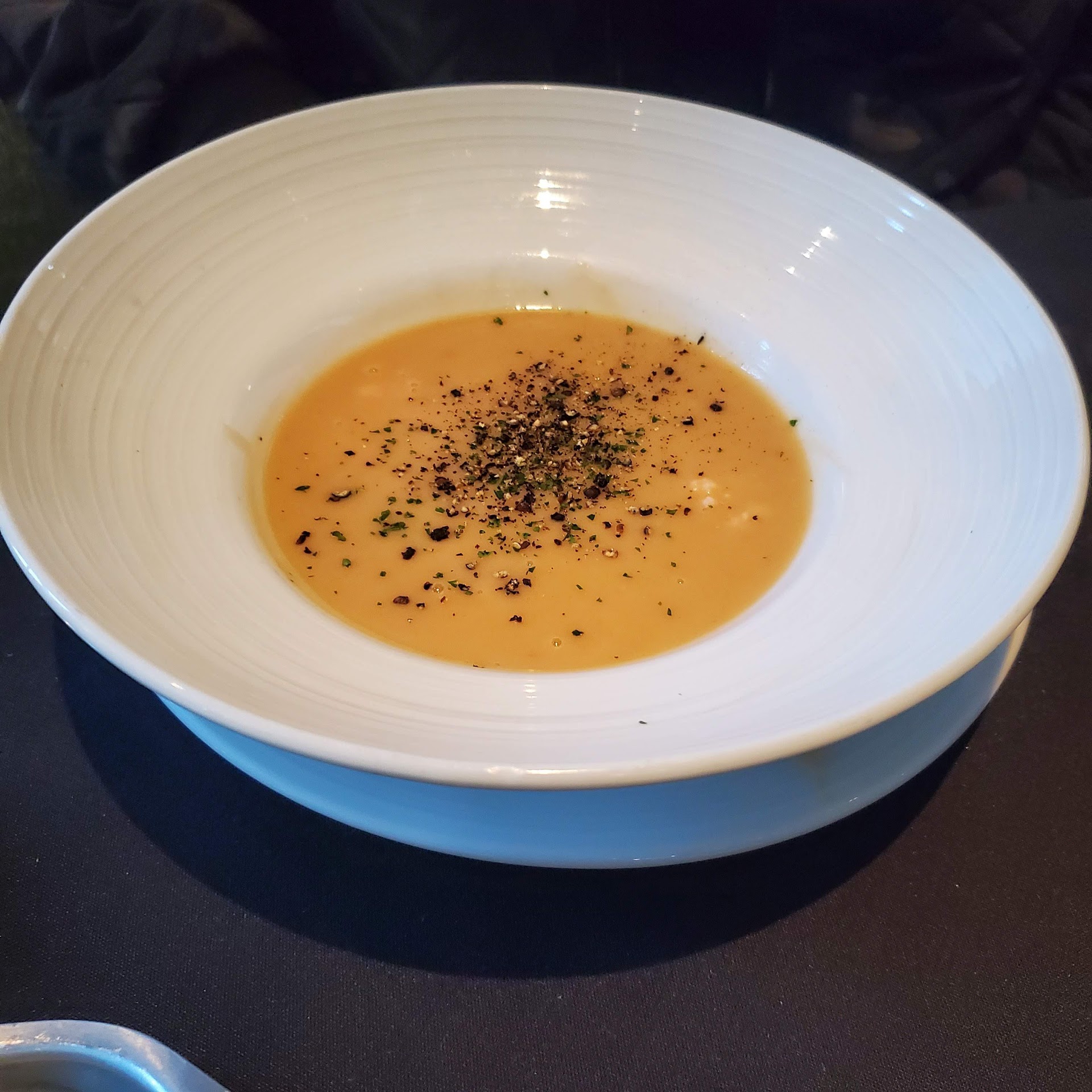 Our appetizers were Lobster bisque and shrimp stuffed mushrooms. The Bisque was served in a very large bowl with perhaps a cup and a half of Bisque. For the price of thr bisque vs the quantity it should had been more. Thr amou t of lobster was minimal.