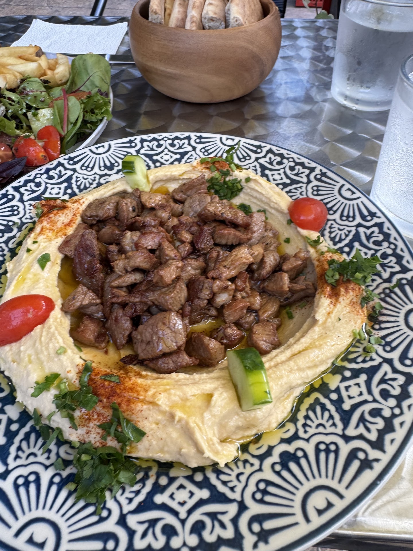 Mid July 2025 My second great meal here! The lamb kebab was delicious! Nice chunks of lamb grilled to perfection. The chef gave us the opportunity to try his falafel! So good! Brought friends tonight! Two of my friends had the chicken shawarma plate and found the meat tender and juicy. One friend had the beef shawarma and also loved it. Pita bread better than the rice or vice versa? We couldn't decide. But BTW they do have awesome fries! And yes, of course, they do take out but the patio is very pleasant. And again, they serve on real plates!