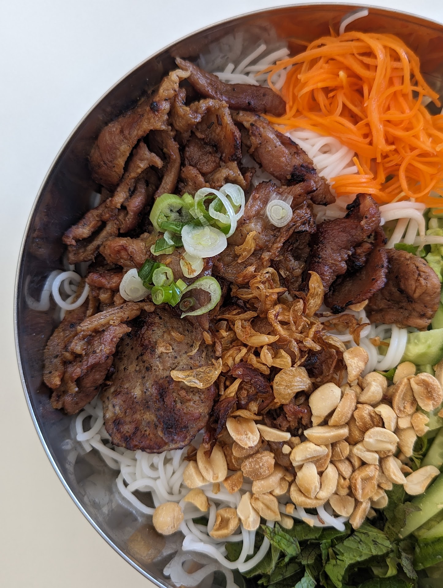 I come here about once every other week when I'm on a regular work schedule. Became hooked immediately with their unique bahn mi sandwiches and their pate chaud. Now I'm completely obsessed with their plant-based shrimp spring rolls and their grilled pork bun bowl. That bowl is the perfect balance of light and filling, flavorful and refreshing. It is one of my lunch go-to options. And the plant-based shrimp rolls are AMAZING. Obviously I'm not vegan, but this is an item that I enjoy so much despite it all.