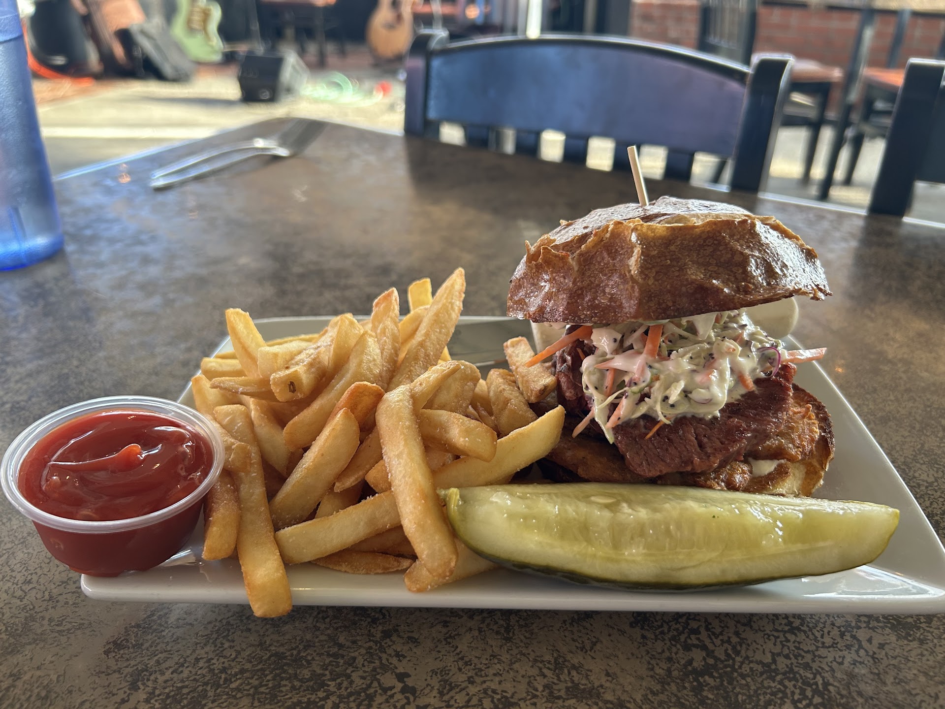 Read moreWe loved the live music which they have every weekend. Today they had a two man band called Steady Rockwell on 1-1-25. They were very talented, eclectic, and open by allowing a customer sing a song with them. The vibe was great! We sat outdoors where they had heated lamps since it was about 55-60 degrees and it made it feel comfortable. The corned beef burger $17.33 was very good (even if a little salty) with very little fat and the meat was cooked very well but not burned and not overcooked and it had the coming off the bone feel where you could eat it like string cheese which I love, and the burger itself had a fried potato pancake as the bottom layer and healthy coleslaw on top of the meat. The bread was toasted just right… only thing is I wish there were Swiss cheese melted and sautéed onions in there… to add to the flavor. But overall quality meat burger and the fries were just right and crispy. The wait staff were very very attentive and I would say they were the top 1% as they kept asking us if we needed anything so we never had to flag anyone down. The security guard was nice too. Easygoing and friendly but professional. It’s situated with all the shopping on the pier so you can also have a water view and enjoy live music while eating and drinking. Parking is the public lot you pay for right across the way in about 10-15 steps at $10 max if you get validation at a restaurant. Shenanigans gives validation. By the hour the parking fee is $1 for every 20 minutes after the first hour. Without validation it’s a lot more. They have...