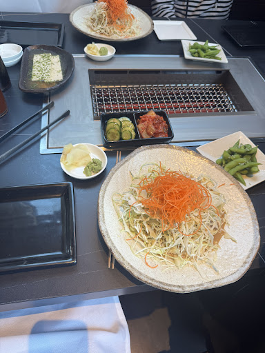 The first time we ate here was during its second week of opening. We ordered the Wagyu set for two, sushi, and some drinks. There were some hiccups (still working things out I’m sure) and we decided to give it another try. Our waiter was exceptional the first time and really went out of his way, the vibe is on point, and we wanted to try more items. Since then I have returned 3 times with my husband, girlfriend, and neighbors. The last 3 times we ordered the Premier set for 2 and it was a lot of food. They changed a few things around- each person gets cucumbers and kimchee, they give a lot more cabbage salad, and instead of the chilled tofu you get deep fried tofu cubes topped with bonito flakes atop a sweet sauce. It ends up being a lot of food now which did not seem like the case the first time we went. The shrimp with the ponzu butter is a great start, followed by the filet mignon medallions, short rib (delish!), spicy pork with lettuce wraps, and pork belly. Last night when we went, we had to check-in with how many more meat courses we were getting since we were so full. Each time we have had exceptional service and the food has always been so good. I love the garlic noodles and shoyu broth too. Hits the spot each time. I’m happy we have a Japanese BBQ style place so close to the house. It’s fun going with a group of 4 too and would like to go with a larger...