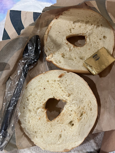 Came here on a Tuesday morning after dropping off kids at first day of school. Drive-thru line was too long so I went in the cafe. It wasn’t too busy inside. Parking was tight but I was able to secure a spot right in front. I was greeted upon entering. There was a partner with an iPad directing and ensuring everything was running smoothly. I ordered an iced tea and a bagel. My drink came out pretty quickly. I did have to wait additional time for my food. My bagel wasn’t toasted properly..to my liking and I received a spoon instead of a knife 😅 (see attached pic). All in all, it was an okay experience. It’s close by where I live so that’s a plus but it is on a busy road so be...