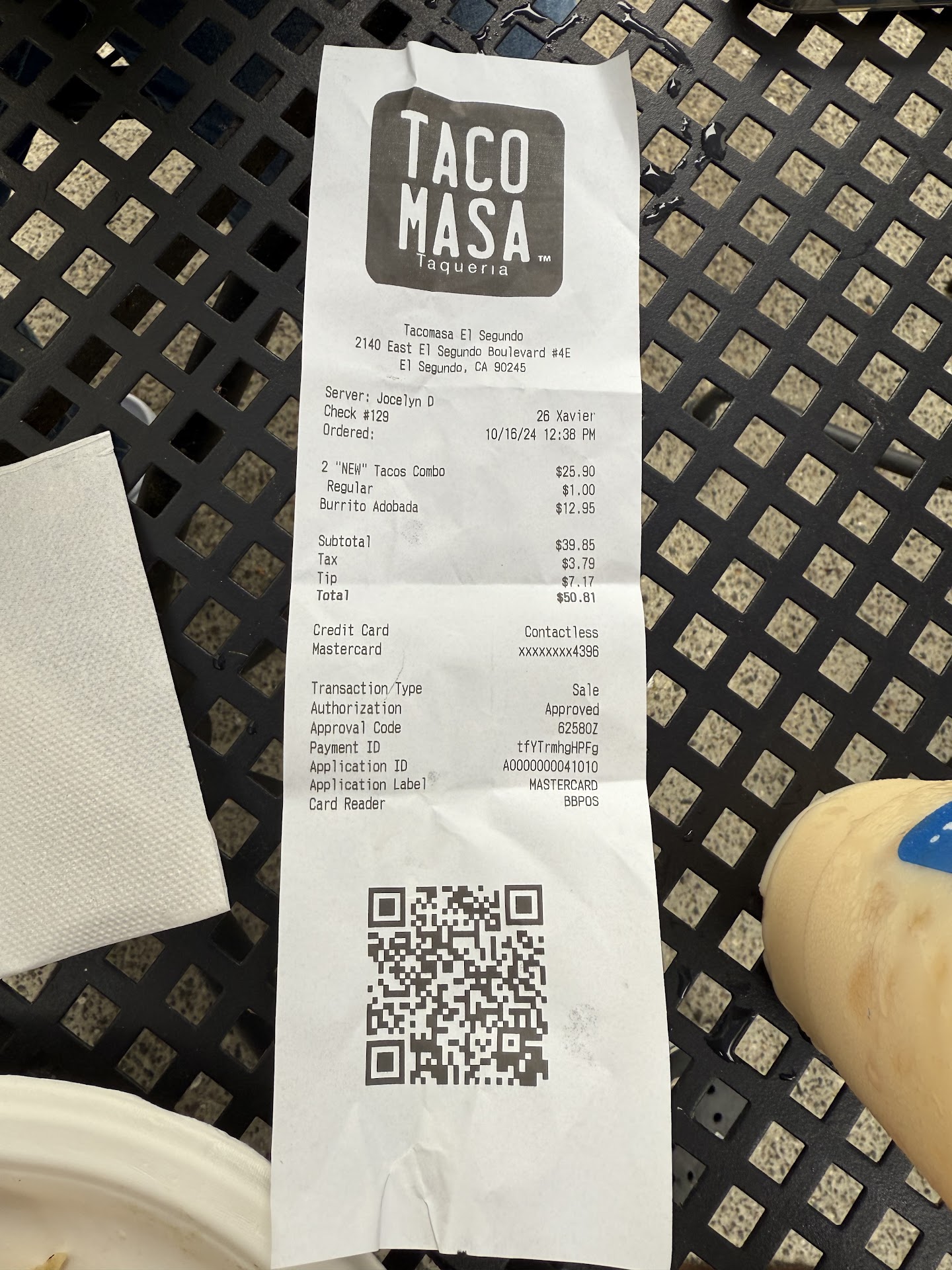 1st review: Customer Service is excellent she was right on point & super friendly. The mulita was ok for me, but my spouse devoured it as he does with anything edible. I did order the tacos even though I had my salsa & guac on the side they were delicious. I do not care for the guac, plus it's not for me. The salsa is a bit bland & not even slightly spicy, an item worth improving overall. The tacos still remain delicious. In fact, they were so delicious I often thought about my #1 spot Taco Nazo, & their tacos. Taco Masa came in on my radar & would be my #2 in the taco world of tacos. Taco Masa definitely deserves a revisit & given time for salsa improvement. If Taco Masa had the salsa from Taco Nazo, they would no doubt dominated in the taco world of tacos. To be...
