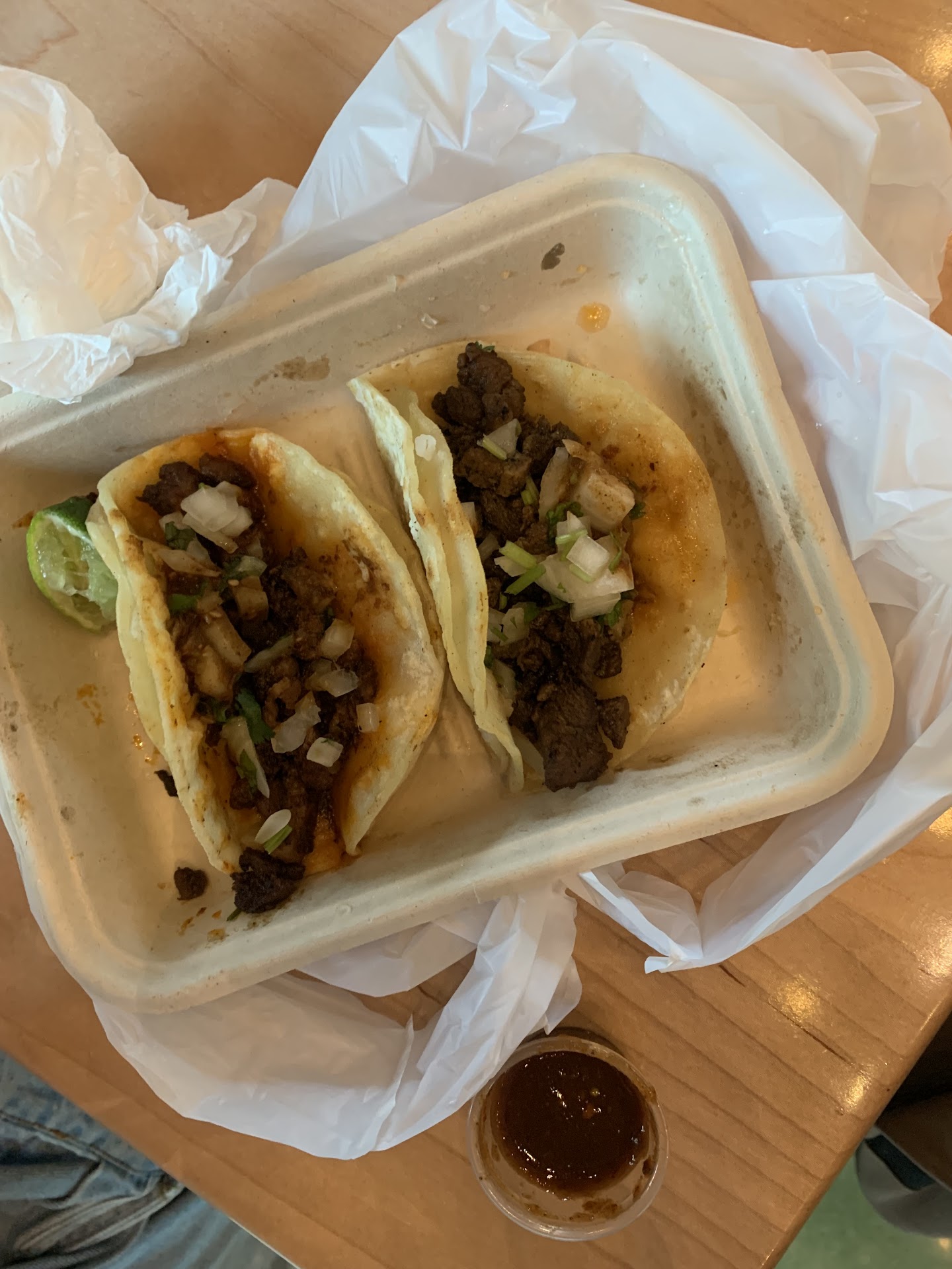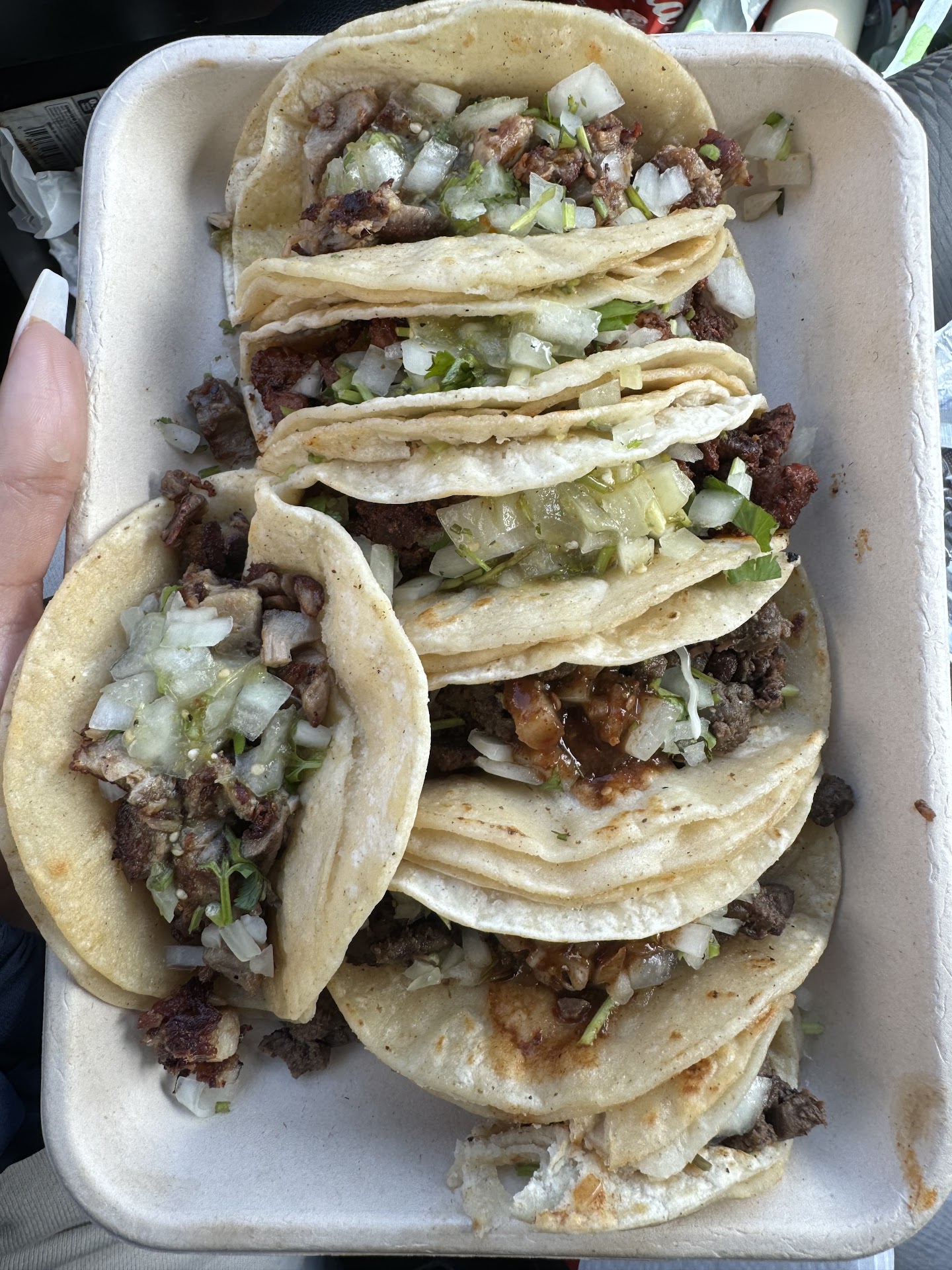 Read moreThese are seriously some crazy good tacos. The Meat quality is so tender and extremely flavorful. The tortilla are so good too they taste as if they are hecho de mano (im not sure if they are but literally so delicious) this is the first place where I’ll gladly eat both tortillas in the taco bc the tortilla is that good. I got everything added, which is onion, cilantro and which ever salsa they pair with the meat. Meats I picked were asada, al pastor and carnitas! The Al pastor was slightly too soft for my liking but flavor is really good. Most definitely coming back especially with the PRICE!! $2 per taco...