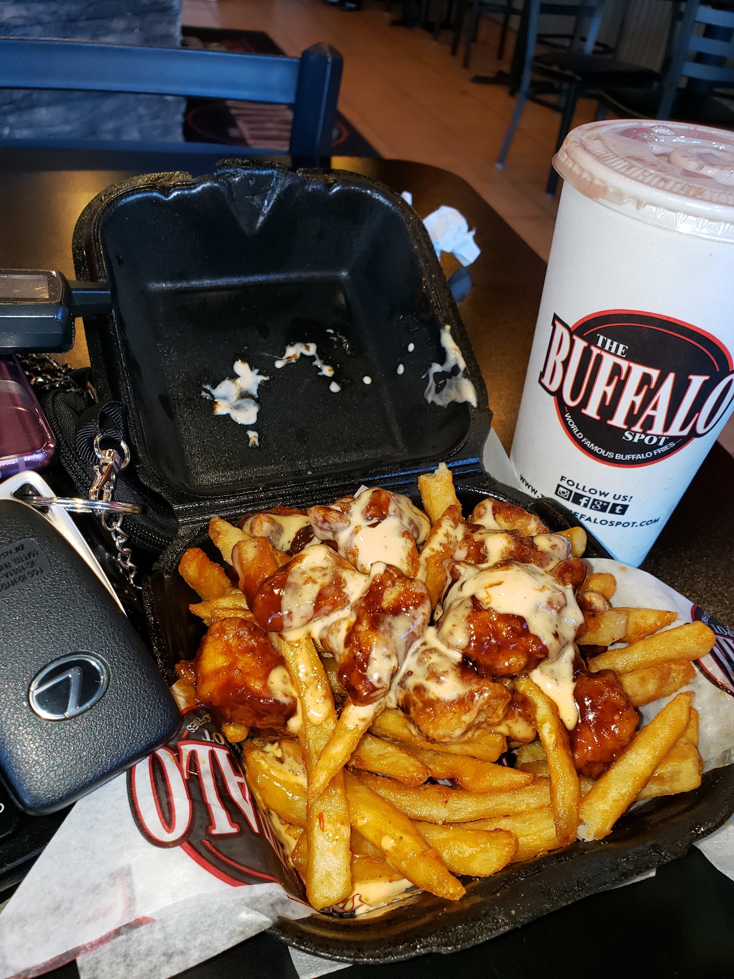 Read moreInstant Classic! I loved it!!! I have eaten here several times. Never had a bad experience. Always clean, food is always fresh and delicious. Very good prices. I'm so happy they are now on uber eats! I cant imagine anyone having a complaint about this place. They have a variety of different choices for the chicken that is used on the buffalo fries. I ordered honey bbq, which is my favorite. I have also tried lemon pepper, teriyaki, buffalo (mild) they have never let me down. They have some other locations. I been to the location in Compton and the other day I was in the Lakewood mall and I am almost positive I seen one in...