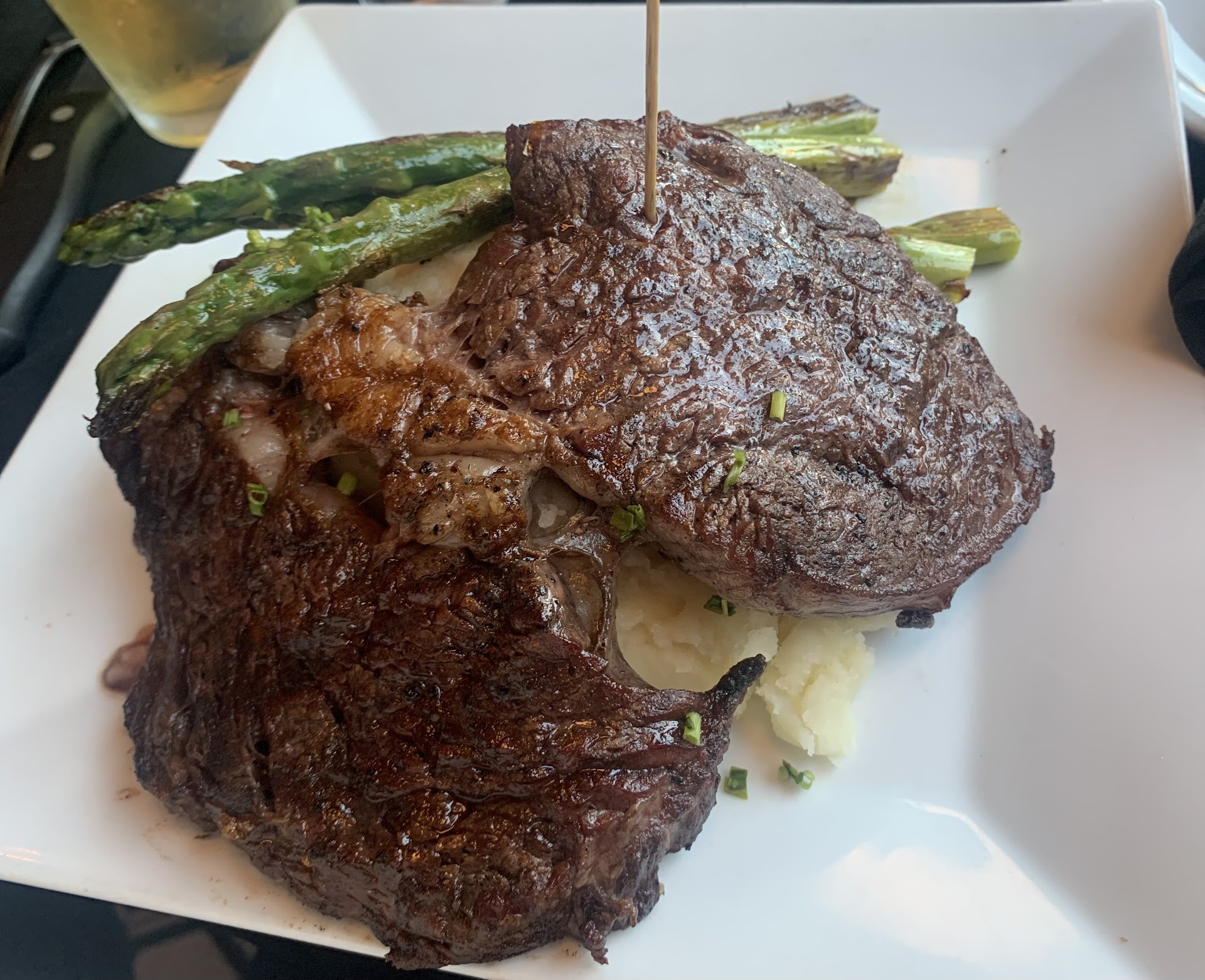 Took maybe 30 minutes for our food to come out but when it didā¦. It was all sooo good!! I had the ribeye: so tender and juicy. Best friend had the glazed salmon with the mashed potatoes: omg. The flavor in the salmon was perfect along with the glaze (she got extra glaze on the side and I dipped my steak into it.. perfection). My daughter had the southwest salad: she absolutely LOVED it Little person had fries: some of the best fries Iāve ever tasted