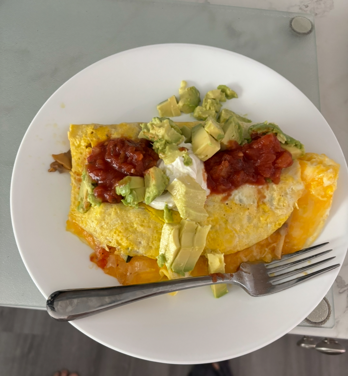 This is an omelette listed for $16+ which we ordered and then last minute they charge you extra… 50¢ an egg. So, $1.50 on omelettes. They do it to egg dishes yet not to the pancakes and French toast… 🤔 so are they not made with eggs? The owner comes up to the table after offering to let us know that tariffs and the bird flu makes him up the charges. Yet it’s nowhere on the menu indicating it. Only after you have sat for 10min going over the menu then ordering. Yet…. At stores the egg shortage have been lifted all over the South Bay. So, an almost 20$ after tax omelette with no veggie and 90% no cheese other than the 2”x2” of burnt cheese on top to hide the burned dry omelette… yet some how cold.