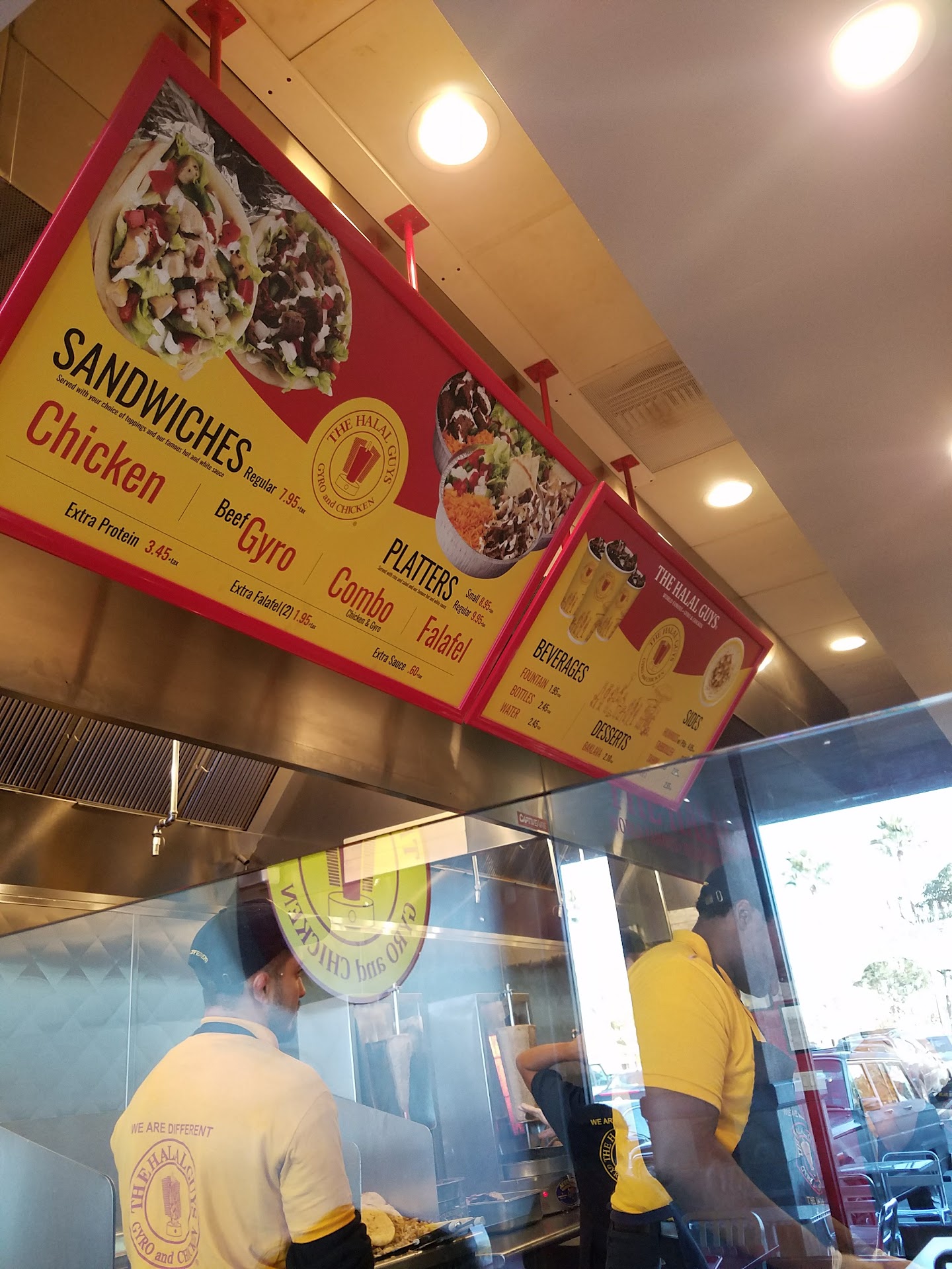 They do not serve LAMB like the original Halal Guys in 9th avenue and 58th street in NYC. I buy food from this place because I miss the NYC food. The Long Beach Branch or Franchise is very stingy with the sauce. In NYC, they are very generous with the sauces of both white and hot sauce in big packets. Here in Long Beach, if you ask for a side of hot sauce, they are very stingy. First time, I ask for 3 packets (and they have small packets like the soy sauce in china restaurants), they gave me 2 packets. The second time I asked for 2 packets, they gave me one. I had a guest at one tine and did not know if he can handle hot foods, so I told the person serving if I can have the hot sauce on the side. I asked for 8 packets since I ordered 2 beef platters. He said sure, you will be charged 20 cents per packet. I said, sure I'll pay for it. I don't know why its free in NYC but not here. This happened yesterday Oct. 3 around 9pm. I guess this happens when you franchise and hire people that tries to impress you to promote them...