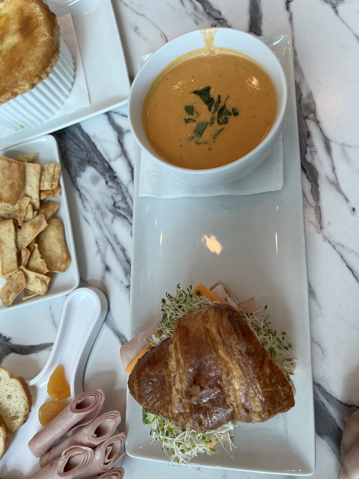 I have never EVER been to a restaurant where I've loved every single thing I've ordered without wanting to change something, ie. "Needs salt, needs pepper, isn't hot enough, zero flavor, etc." I fell in LOVE with every single thing we ordered! I didn't have ONE critique, everything was perfect. The hummus was so fresh I was in awe, perfect chips and cucumber slices. The tomato bisque was seasoned perfectly, very very hot (it's my biggest pet peeve when soup isn't hot), we got the California club and it was perfect. The croissant was flaky and light, perfect addition. Delicious lunch meat, again, I'm the pickiest person alive and I could have just ordered a side of the meat. We also ordered the charcuterie board, and every bite was perfect. The presentation was beautiful, and it was a great size for 2. The chicken pot pie had to be my favourite. Fresh, super hot (how it should be), so flavorful, and just perfect. I will never go anywhere else for my chicken pot pie needs! Even the side SALAD was perfect, and I hate salad. Emily was our server and not only was she extremely attentive, personable, and quick, she was just so KIND. I felt so seen and appreciated as a consumer. She gave great recommendations and was so fun to talk to. It definitely added to the ambience of the place. Additionally, we found out that day that the restaurant is family owned! Mary is the owner, just as sweet as pie, and Shannon, her daughter, is equally as sweet! We raved to them over how delicious everything was, and their appreciation warmed my heart. I came back again yesterday and they all remembered me by name and made me feel even more welcome. From the pickiest girl on the PLANET: YOU NEED TO EAT HERE! 11/10 recommend! Also, you can get cocktails to GO!? in BATCHES!? It can't get any better. Thank you Emily, Mary, and Shannon for continued great experiences. I'll be back...