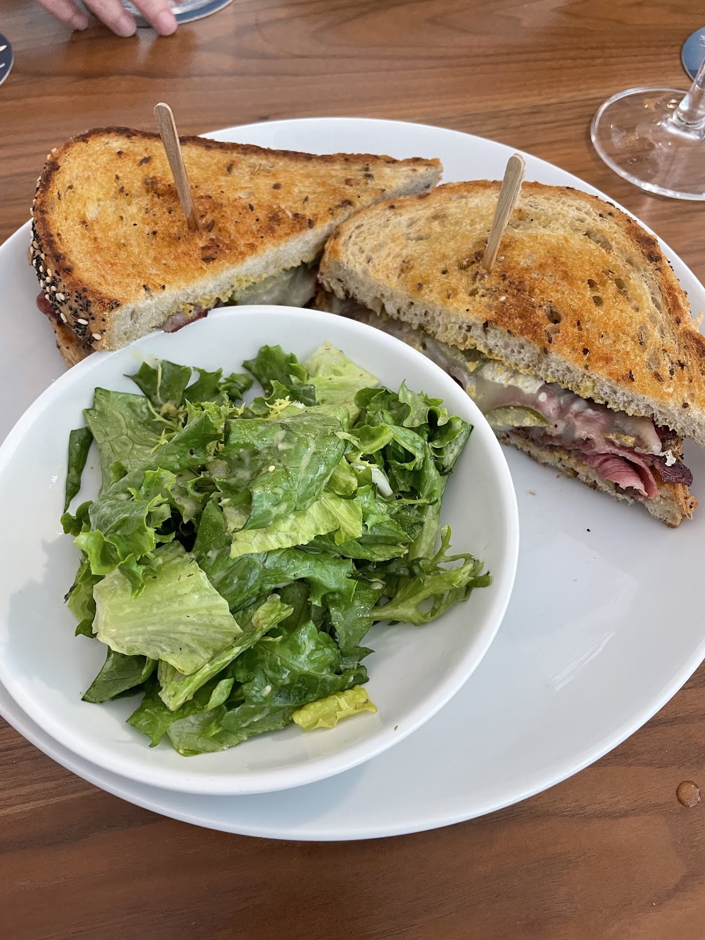 I always sit by the wine wall in the corner, which gives the best backdrop for feeling sophisticated while I savor the flavors of their incredible menu. And speaking of food—let me tell you about my California Club. This beauty came with smoked turkey breast, cheddar, bacon, avocado, lettuce, tomatoes, and alfalfa sprouts, all tucked into the softest, flakiest butter croissant you can imagine. The way that croissant practically melted in my mouth had me savoring every bite! It’s the perfect blend of crunch from the bacon and freshness from the veggies.