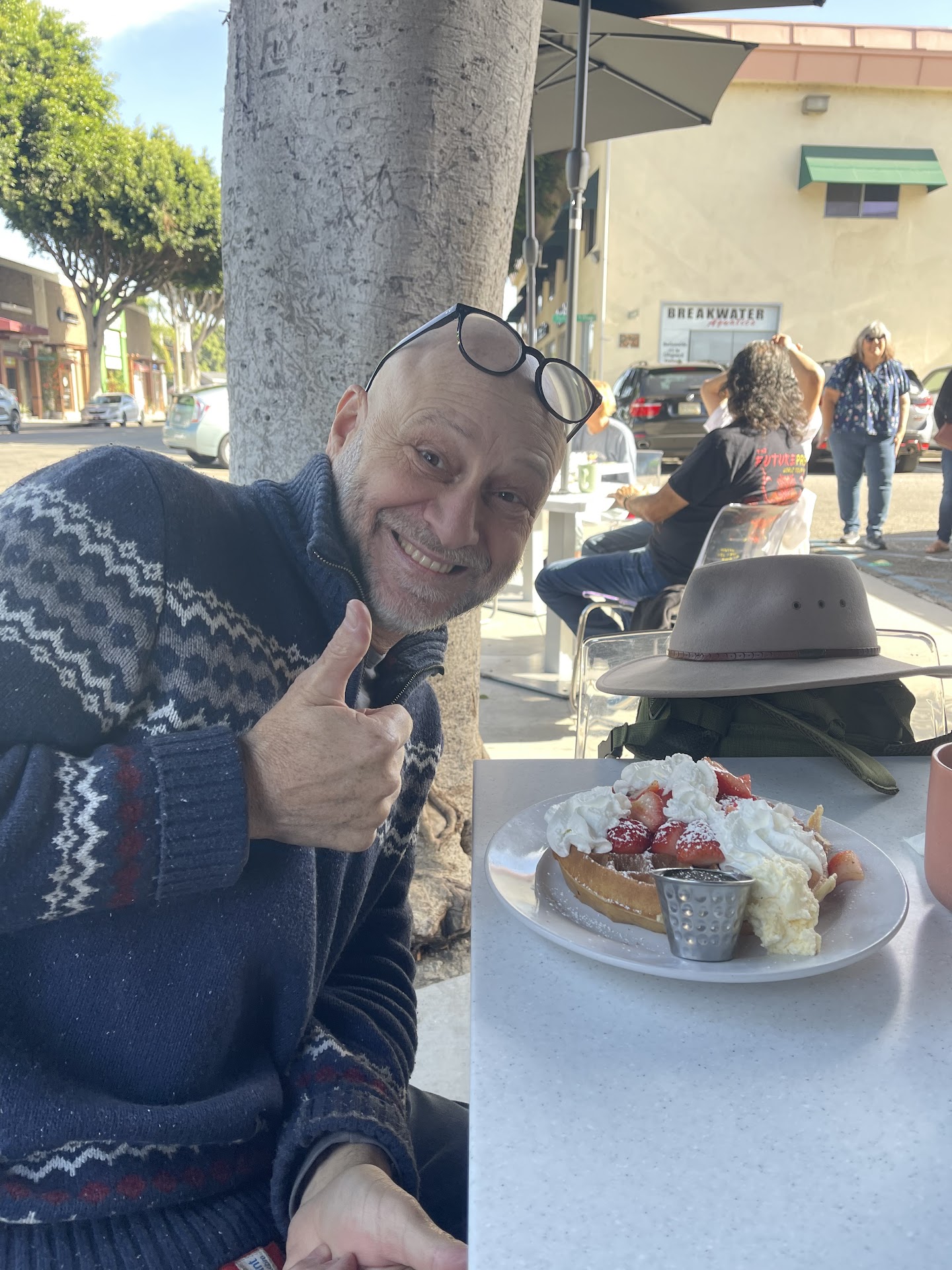 I told the waitress it was my birthday so she gussied up my French toast with strawberries and blueberries and whipped cream. So special.