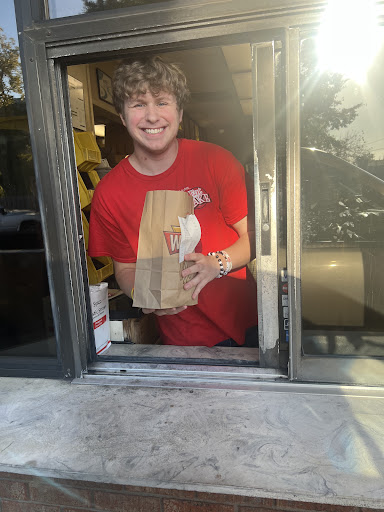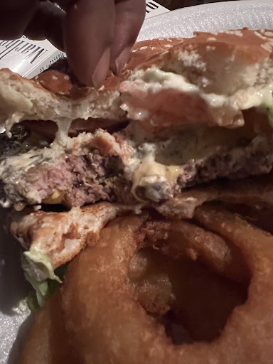 We live close by and decided to take it home. Staff was nice and friendly. Recieved food and got home. Frys were nice and hot but did seem like they were reheated . My burger was ice cold and looked like a train ran it over. Overall tastes okay and did enjoy the sonic like onions. Wife's popcorn chicken was good and seemed like a hit. Again the frys were bot but seemed to be reheats Kids chicken tasteless and frys same as before.