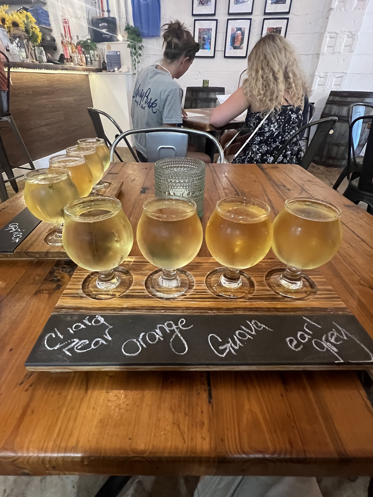 Now for the beverages: One reason we so enjoyed Beach Bee Meadery was because all of the mead and cider selections were full of complex, layered flavors without having the typical and fatiguing sweetness which often plagues these types of beverages. Every selection was delightful and refreshing. They also featured a number of "remixes" on their classic style beverages which were barrel aged. They even had a selection for the bourbon lover in your life! These selections were treated with equal care and really elevated their flavor. We cannot recommend the Beach Bee Meadery highly enough. This is a must visit establishment for any fans of cider, mead or craft beverages. Thank you, Beach...
