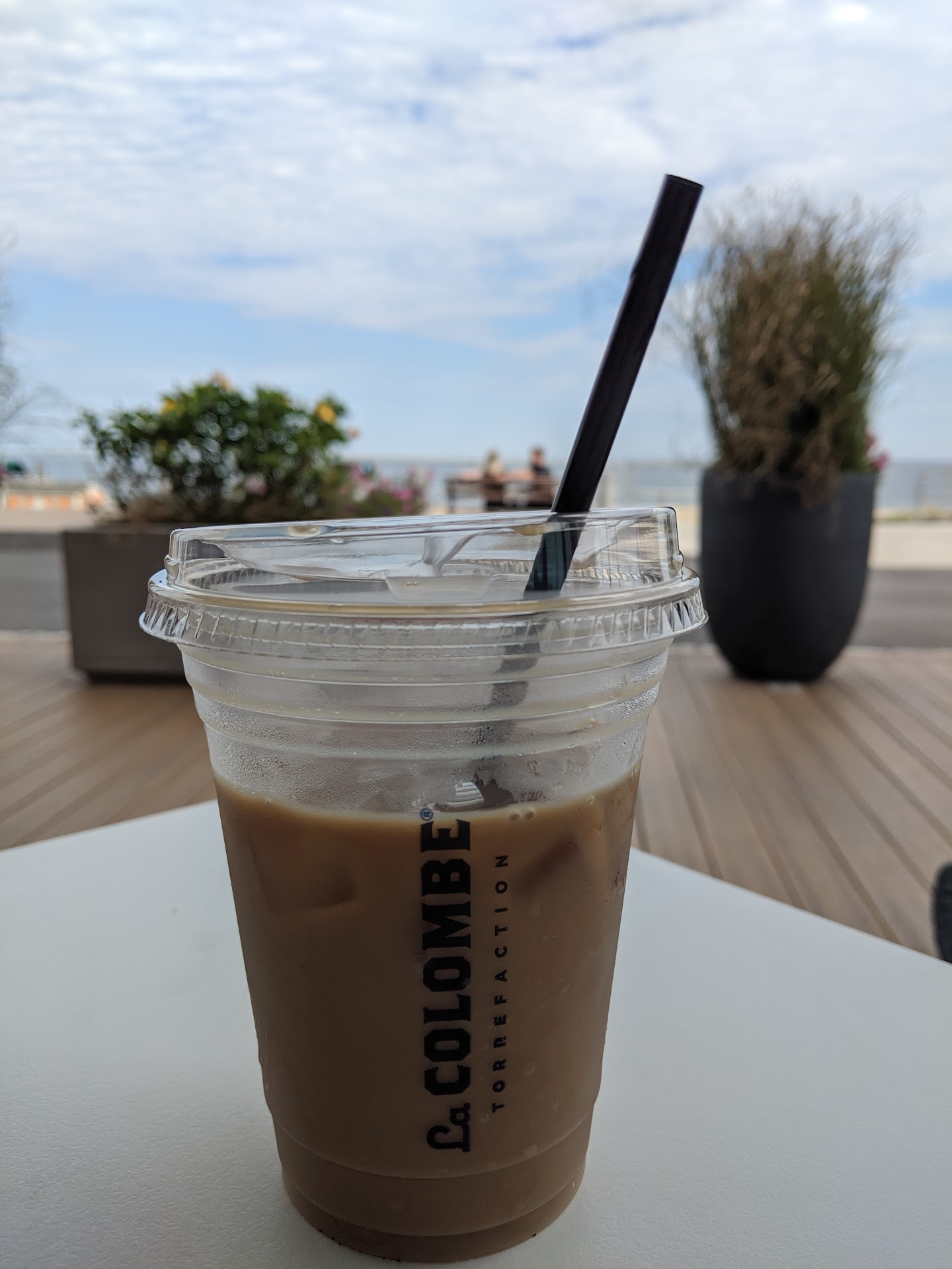 Read moreI went there yesterday and got a caramel latte and slice of banana bread. Latte was delicious. Banana bread was a little stale around the edges but still very good. This location is right on the boardwalk and has a great view of the beach. Water was more stormy yesterday and today was rather calm. Went back for same latte but the one I had yesterday was better. More sweet and more hot today. It was also more busy which was ok but I didn't really care for the music so I took the latte to go and didn't sit as long as...