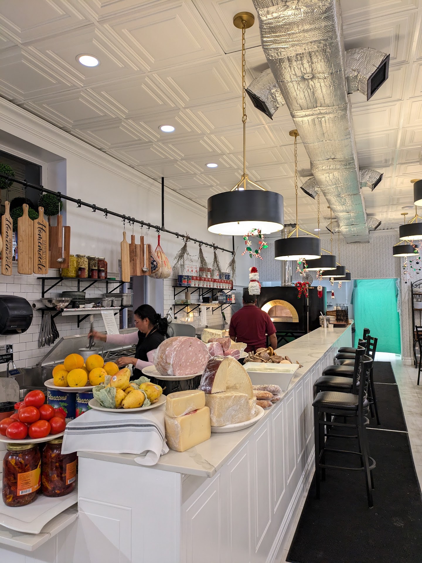 The fresh produce and ingredients are displayed at the end of the countertop seating - a preview of the high quality meal we were about to enjoy! The antipasto appetizer had everything by way of meats, cheeses and veggies to make multiple combinations of the perfect bite! And the fresh mozzarella, made daily, was absolute perfection.