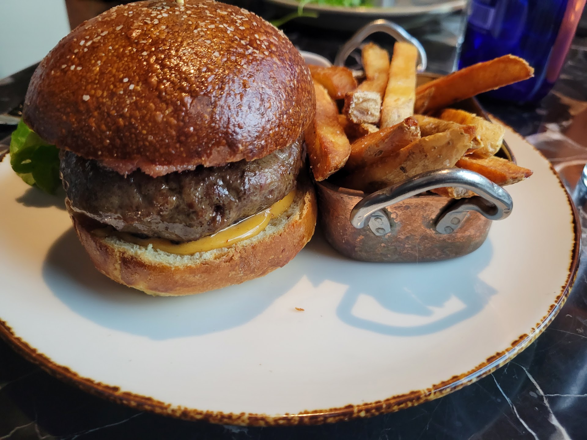 Read moreMeter street parking or there is a garage next door, for $20. Place has a modern vibe. Made reservations on a Sunday night, but wasn't necessary. Place was very busy, but there were open tables. Food was good, but way over priced. The staff was amazing. There was a very difficult guest sitting next to us, that sent her steak back 3 times because she didn't want to taste the grill (what!). The staff and management team handled it with patience and grace---amazing how patient they were. We ordered the duck and waffles for appetizer, and a bowl of the soup of the day which was a corn puree. Duck and waffles was delicious, tender red and juicy--so good. The corn soup was a bit bland and not worth $17---it's soup. I opted for the $46 salt signature burger which is not just ground beef, it's a mixture of meats. I was expecting a really good burger but it was very dense and slightly over cooked and had a weird texture (I asked for medium cook and it was well done--i dont send back food unless its unedible, it was still edible and tasted good). Husband got the rib eye, he loved it. Great cook and flavor on the steak. While the staff was very attentive and wonderful, the service was slow....I'm pretty sure it was due to the chick next to us sending her stuff back so many times (eyeroll). I have dined at high end/expensive restaurants before, this was by far one of the most expensive. We will likely not return due to the cost. They do add gratuity to the bill, which I never like (high end or not). In the end, the staff earned their tip, but we likely won't return due to the over pricing. $240 for the 4 items I just mentioned is a bit much---with no cocktails, we had bottled water...